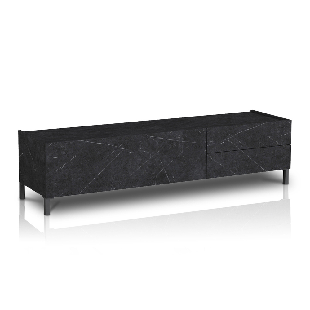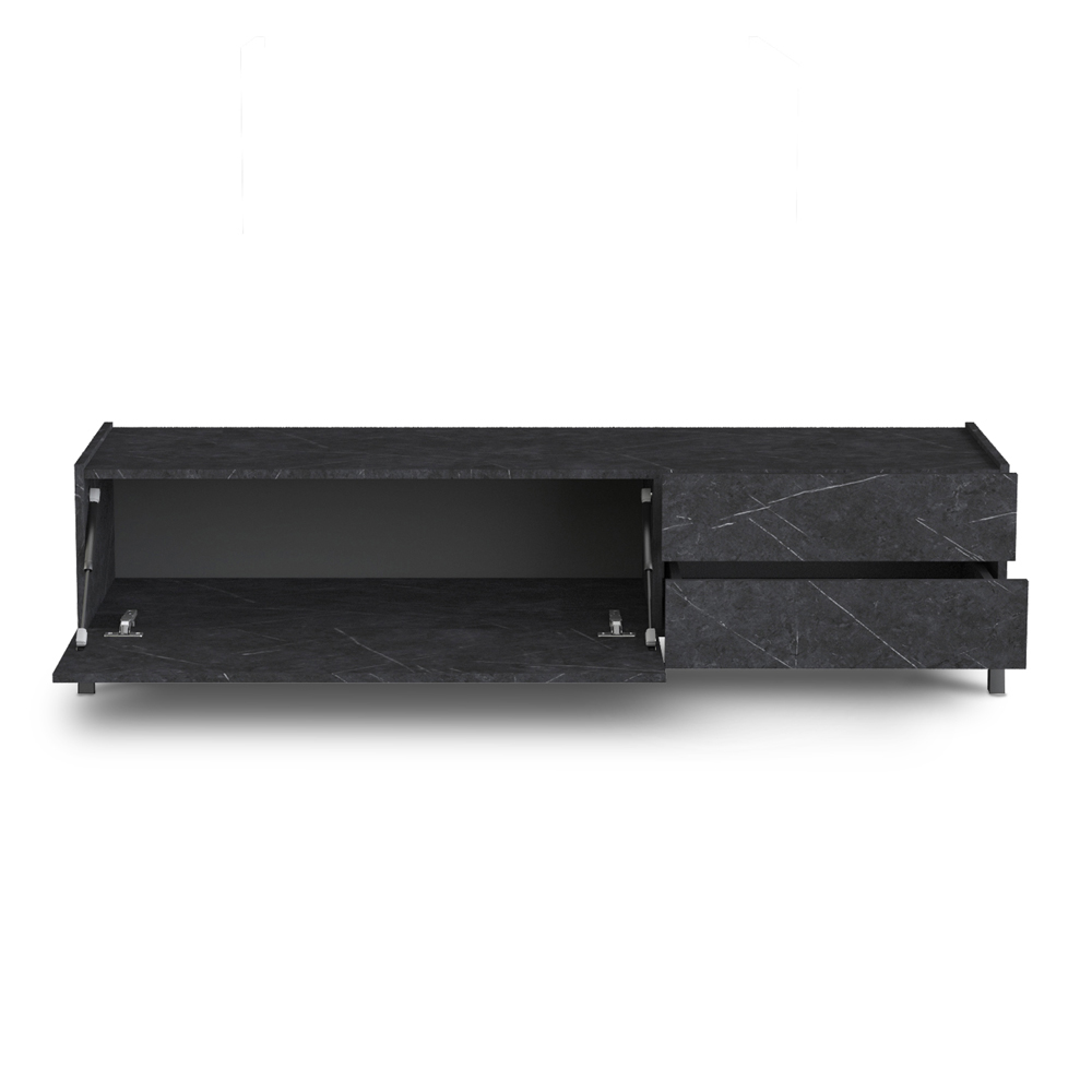 Drewniana szafka pod telewizor z 1 drzwiami składanymi i 2 szufladami