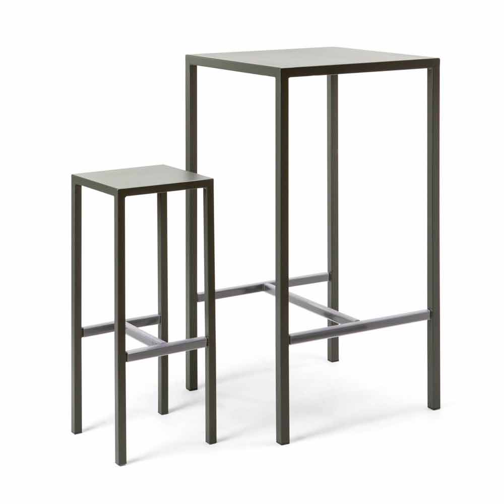 Nowoczesny stół barowy z 4 krzesłami, w całości wykonany z ocynkowanego żelaza, malowanego proszkowo. Wyprodukowano we Włoszech.