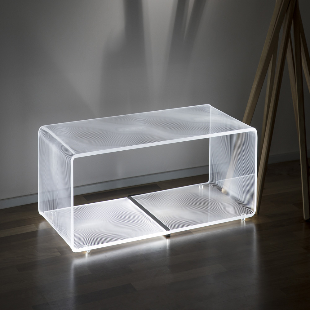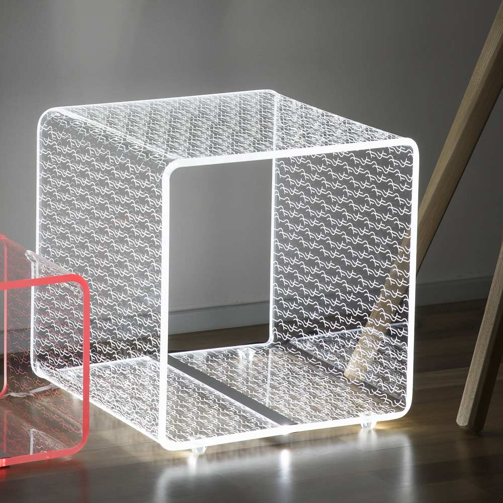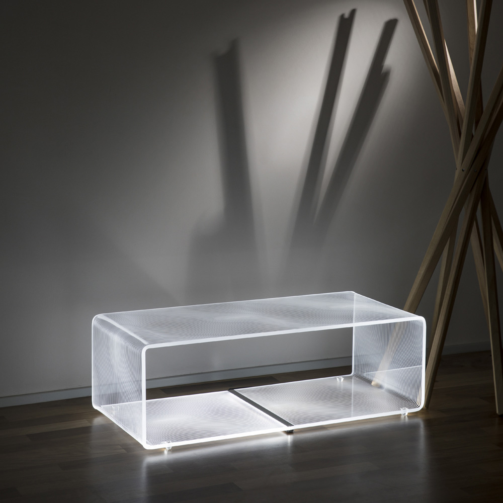 Świecący stolik kawowy z diodą LED RGB w przezroczystym akrylu 2 warianty i 2 rozmiary wyprodukowany we Włoszech.