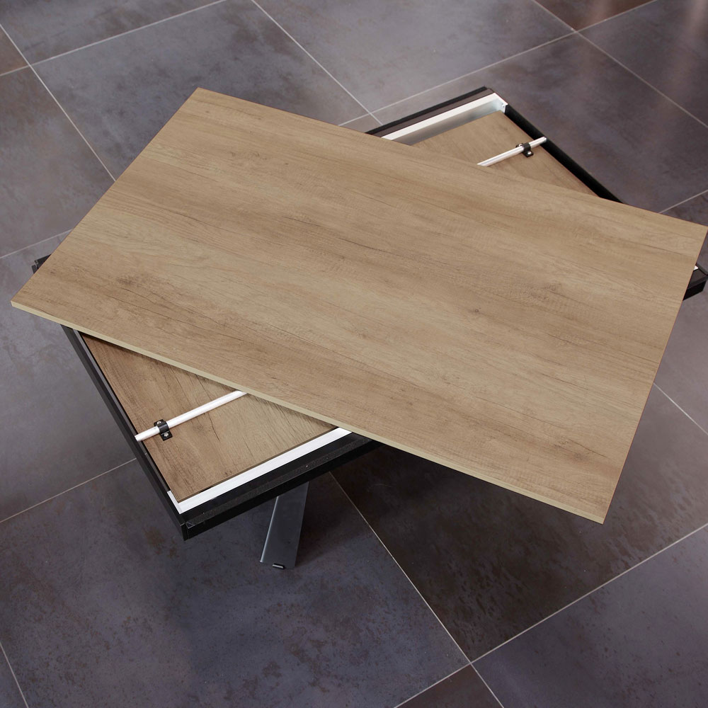 Stół do salonu wykonany z melaminy i metalu