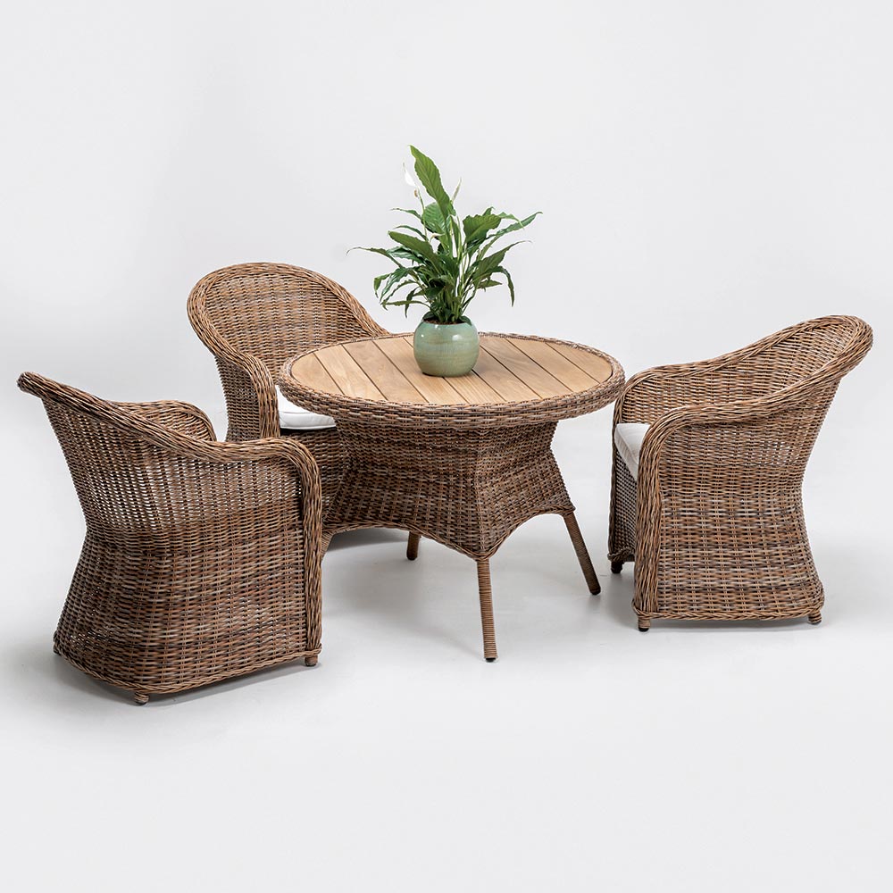 splotu polirattanowego wysokiej jakości oraz blatem z szerokich listew