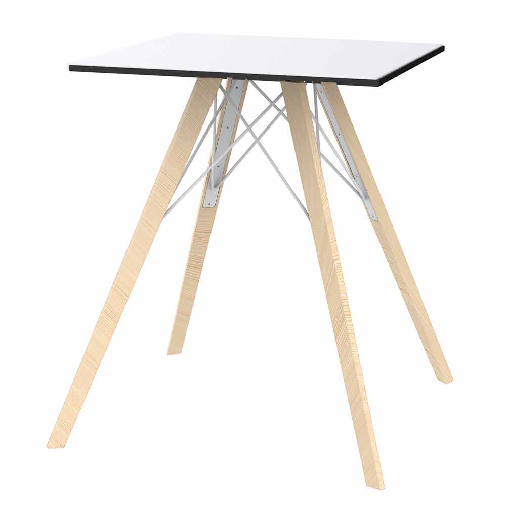 Kwadratowy stół jadalniany z drewna jesionowego i blatu HPL w kolorze białym lub czarnym, w 3 rozmiarach, 4 sztuki.