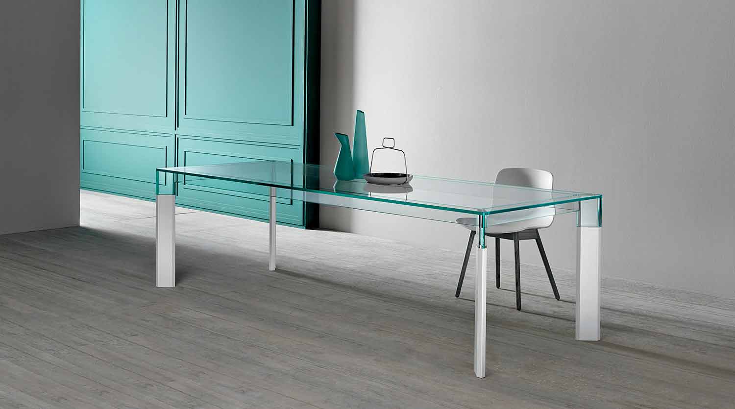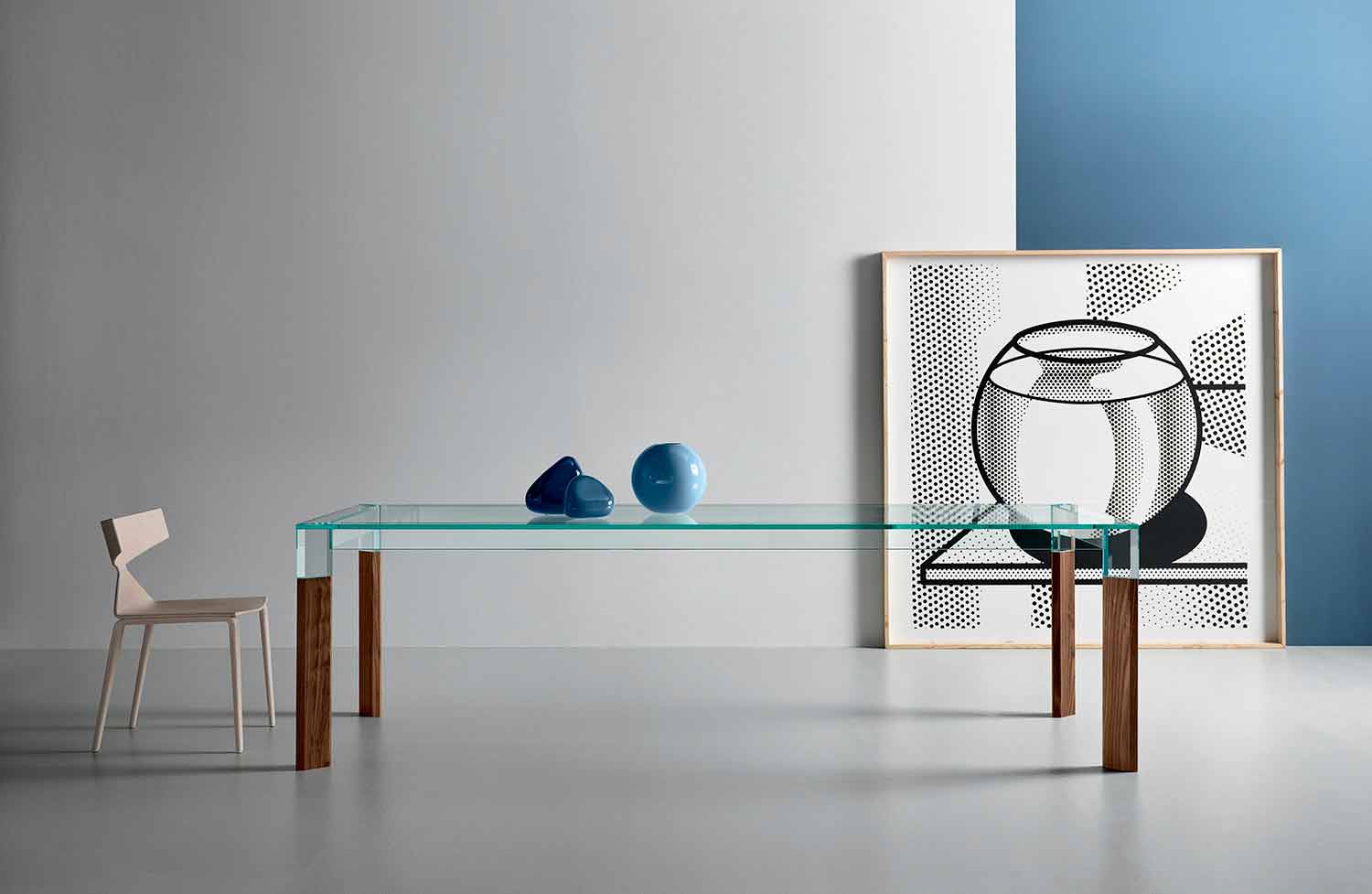 - wyjątkowo przezroczysty szklany blat, podstawa z litego orzecha canaletto;