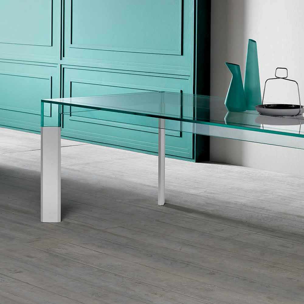 wyjątkowo przezroczystego szklanego blatu (o grubości 15 mm) i zdejmowanych nóżek z