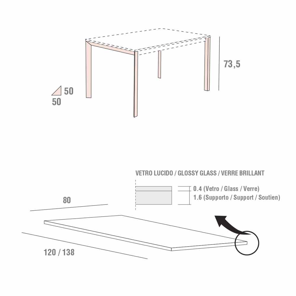 Stół kuchenny z białym szklanym blatem i metalową konstrukcją Made in Italy.
