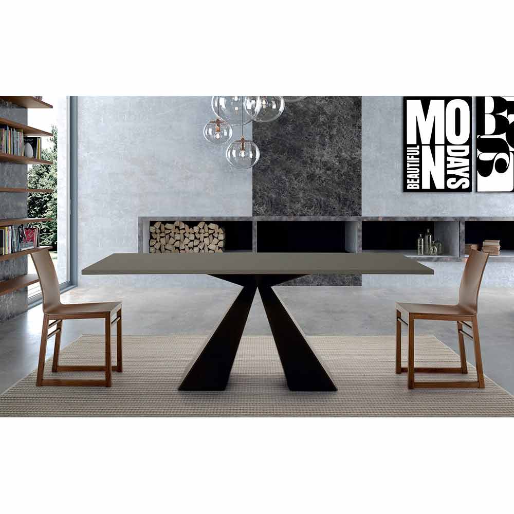 Luksusowy stół do jadalni z blatem Fenix i stalową podstawą Wyprodukowano we Włoszech.