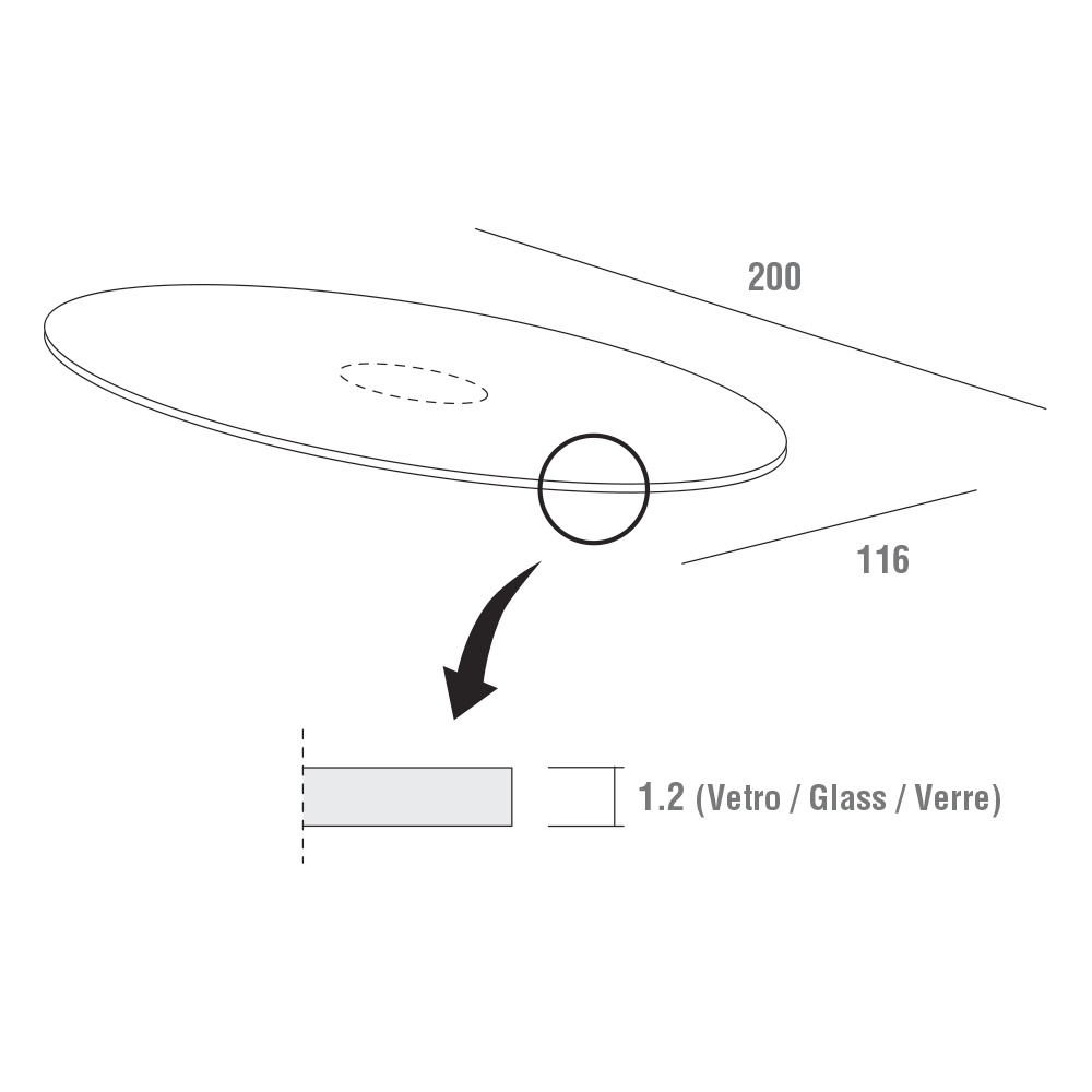szkła hartowanego (grubość 12 mm) lakierowany matowo i podstawą z