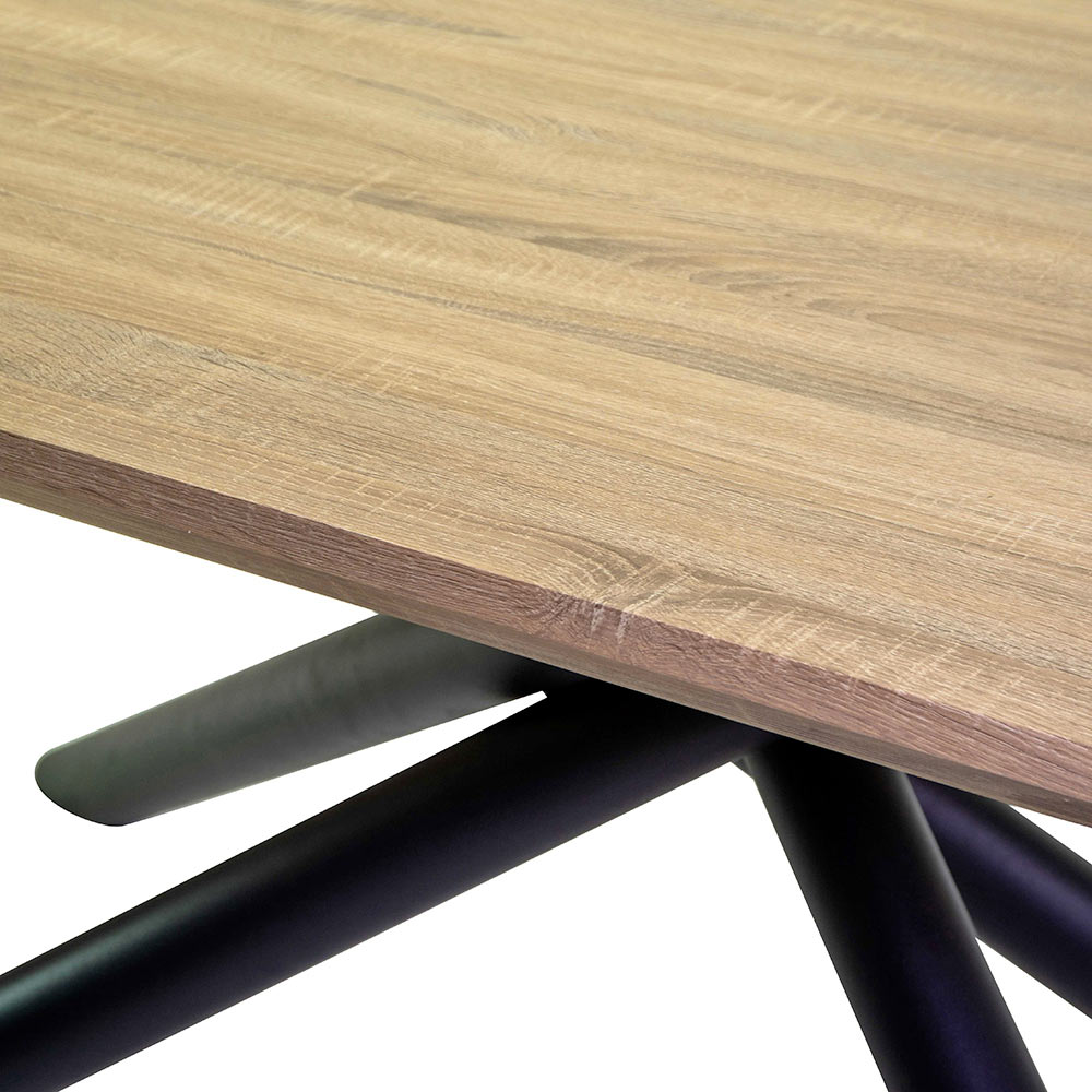 Blat z płyty MDF z wykończeniem imitującym naturalne drewno dodaje meblom ciepła i charakteru , tworząc harmonijny kontrast wizualny z ciemnym metalem. Gładka, przestronna powierzchnia oferuje idealną przestrzeń do powitania rodziny i gości , idealnie dopasowując się do każdego otoczenia, od jadalni, przez nowoczesny salon , po pomieszczenia biurowe , takie jak restauracje czy gabinety.