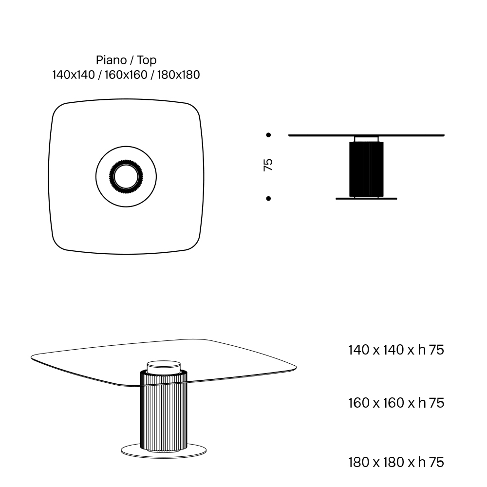 Uwaga : stół jest również dostępny z okrągłym lub prostokątnym blatem.