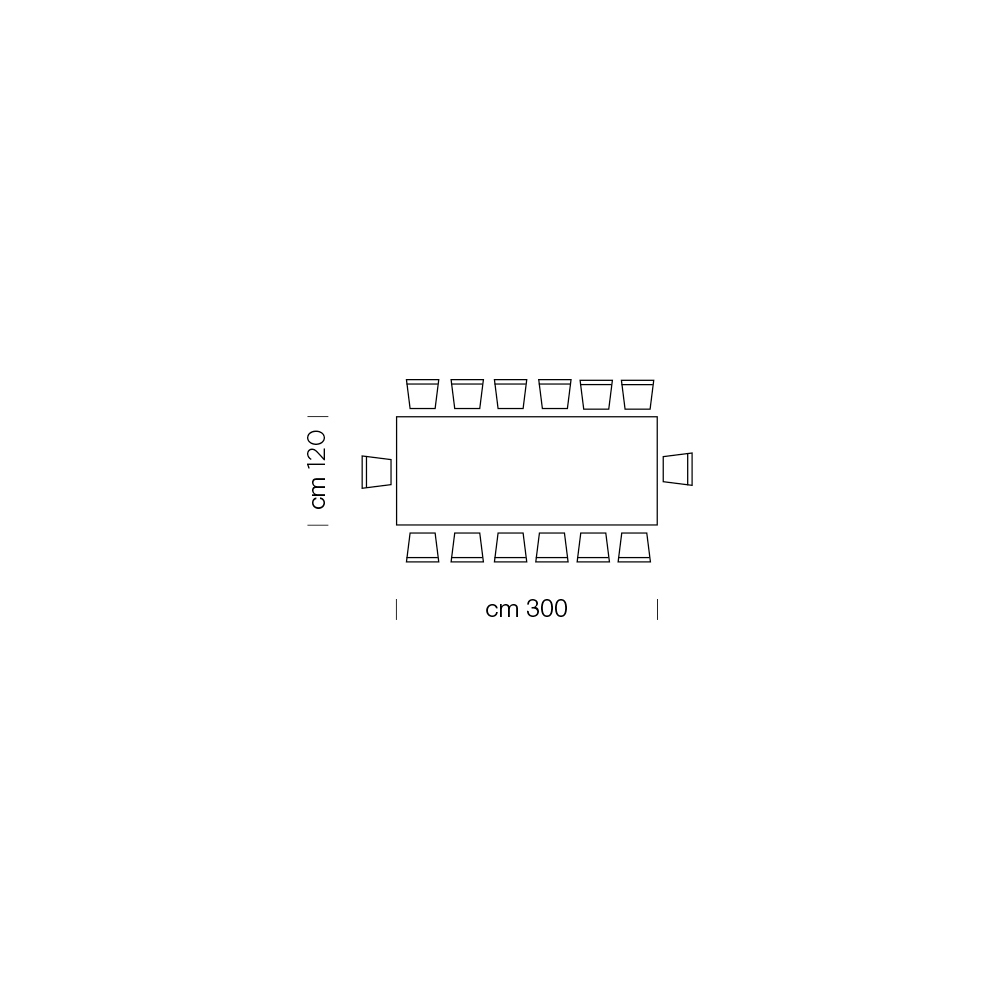 - Dł. 300 x gł. 120 x wys. 73,5 cm (14 miejsc).