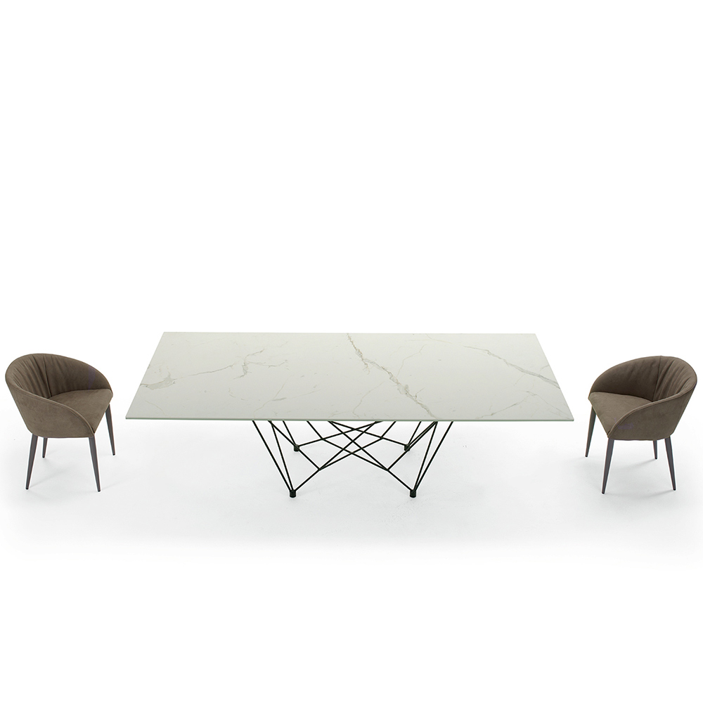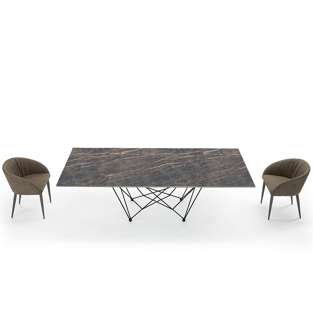 Stół prostokątny Ezzellino to stół nowoczesny i elegancki; zarysowany przez fuzję stylów, geometrii i materiałów, będzie idealny do wyposażenia każdego otoczenia.
