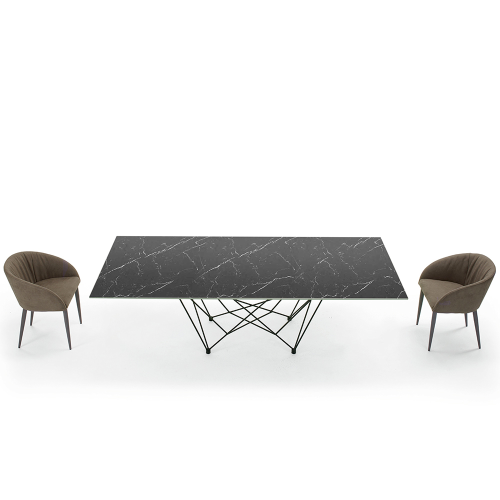 Nowoczesny stół kuchenny z blatem Laminam i czarną stalową podstawą wyprodukowany we Włoszech.