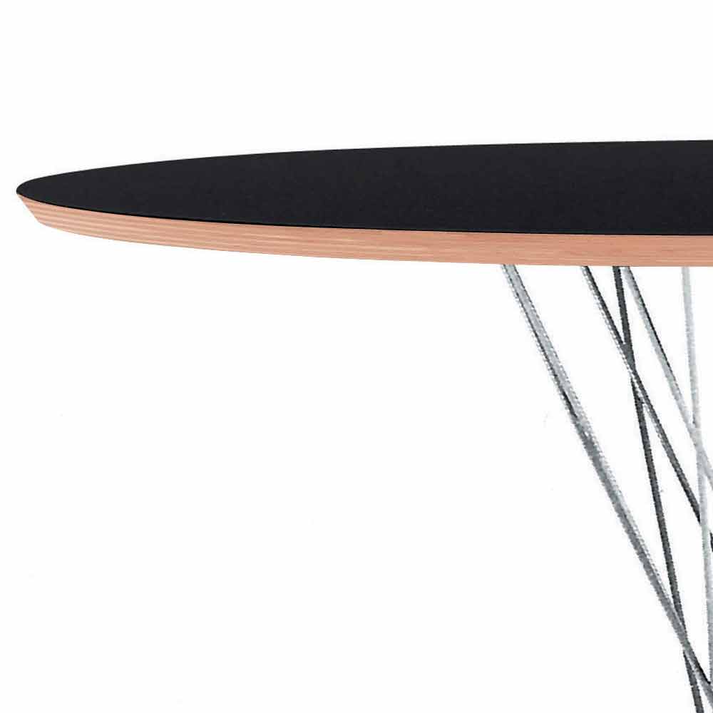 Stół do jadalni wykonany w 100% z produkcji Made in Italy z okrągłym blatem z czarnego laminatu, czarną podstawą i chromowaną stalową konstrukcją. Nowoczesny i niezbędny projekt charakteryzujący się liniami i kształtami, które przyczyniają się do nadania wszechstronności produktowi i ekskluzywnego charakteru otaczającemu środowisku. Jej mocną stroną jest szczególna konformacja podstawy, która nadaje stołowi osobowość i charakter, zapewniając jednocześnie solidny i wytrzymały produkt, a laminowany blat podkreśla jego elegancję i nowoczesność, ożywiając mebel. trzeźwe i wyrafinowane meble zdolne do scharakteryzowania każdej sytuacji stylistycznej z poczuciem wyrafinowania i innowacyjności .