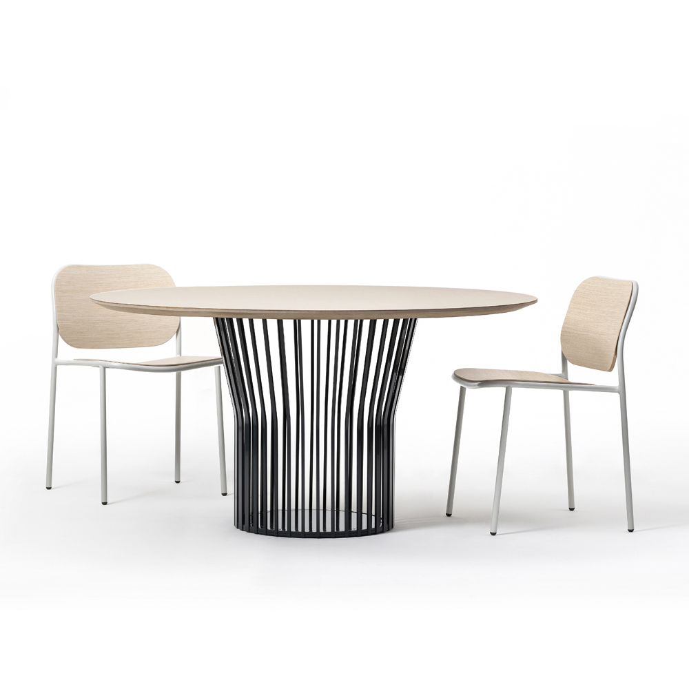 oryginalnemu i dynamicznemu projektowi składającemu się z wielu szprych o różnych szerokościach, które u góry rozkładają się na zewnątrz, a następnie otwierają, aby podeprzeć blat. Rezultatem jest