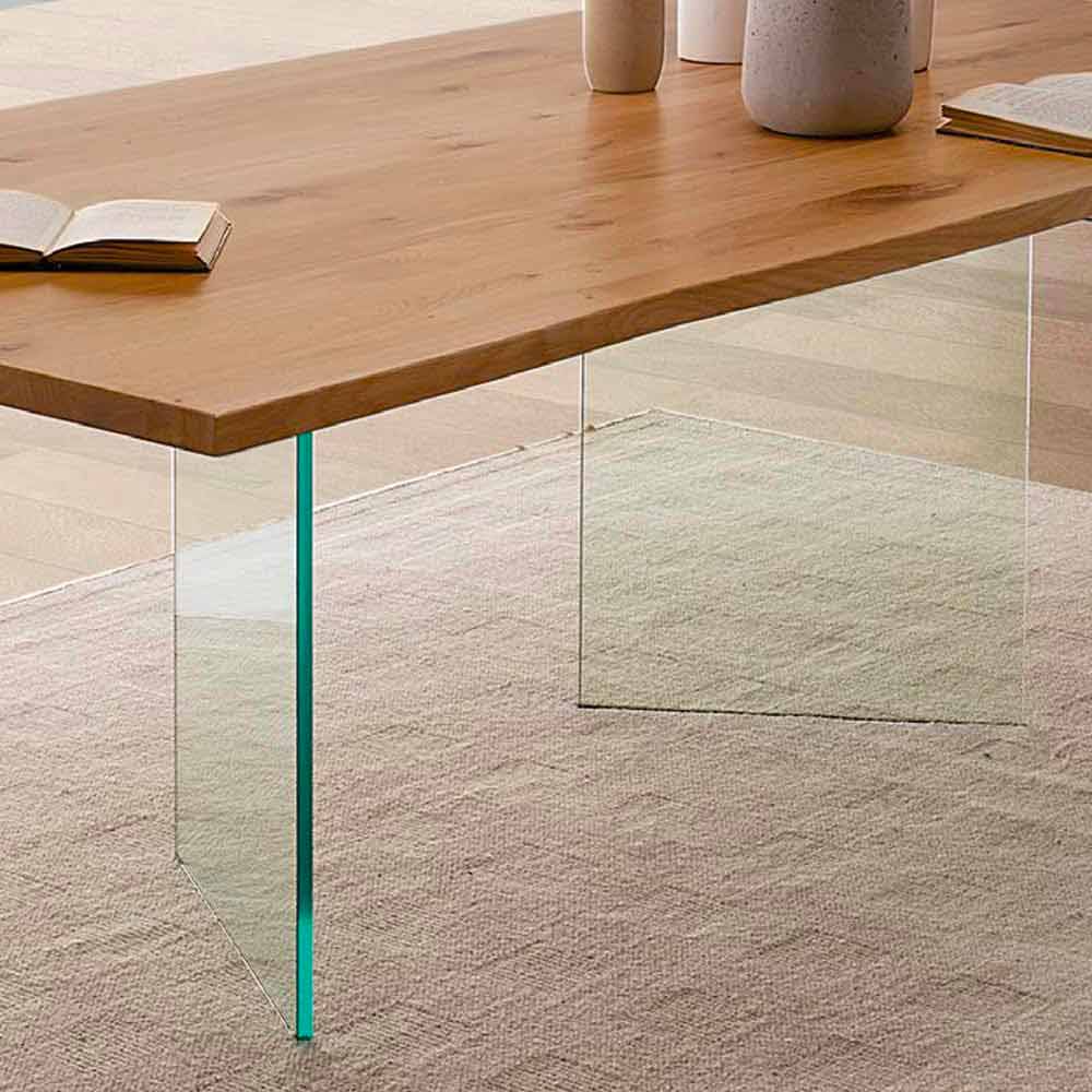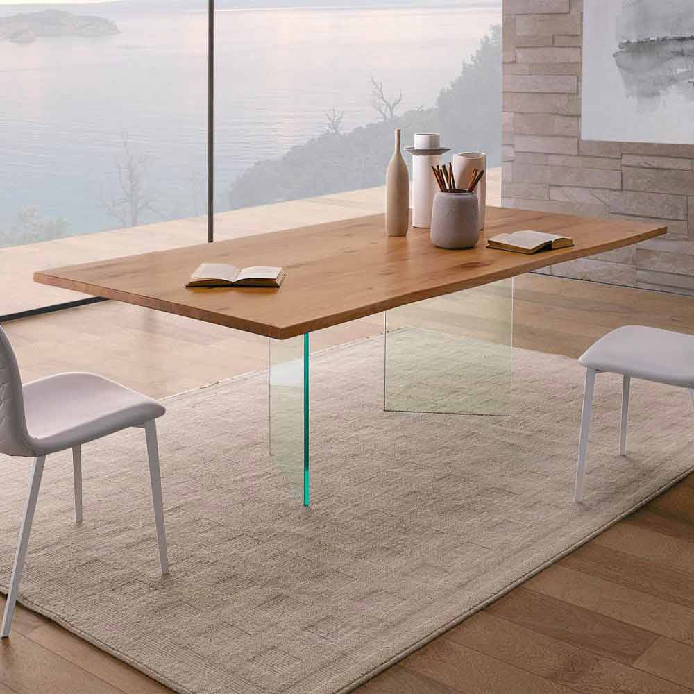Nowoczesny stół do jadalni wykonany ze szkła i drewna, wysokiej jakości produkt Made in Italy.