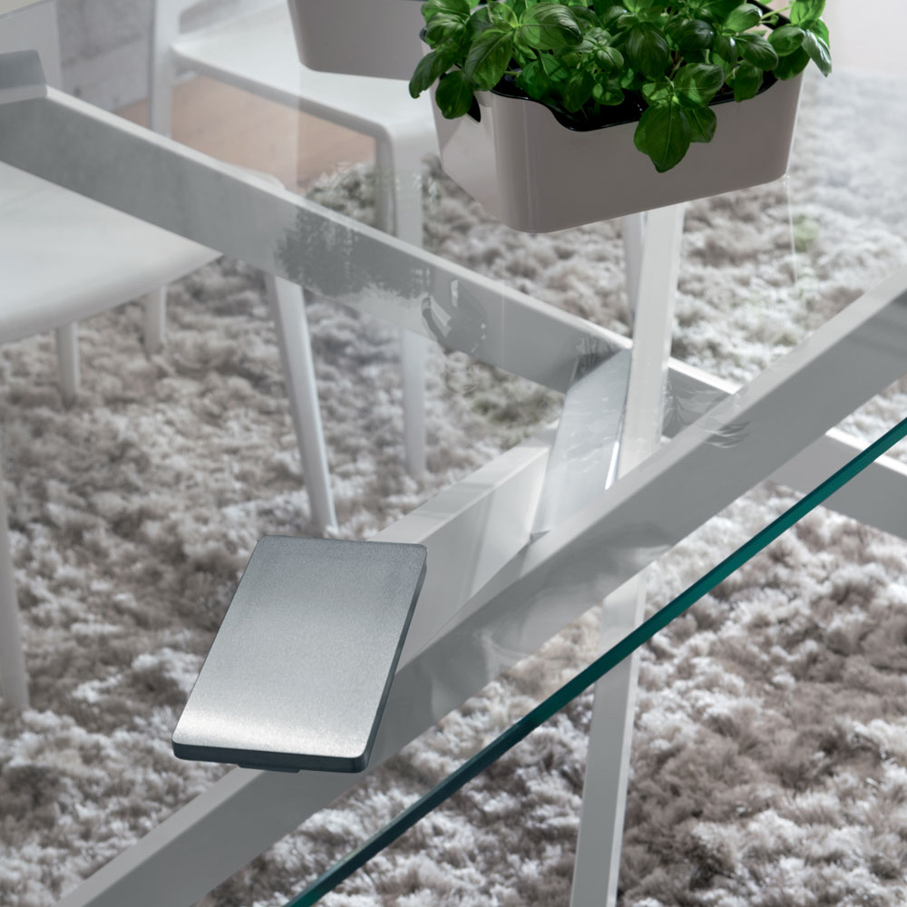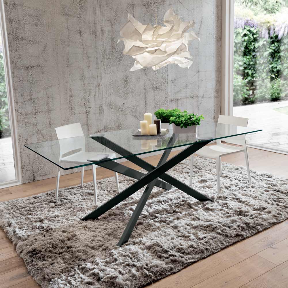 Stół do jadalni z przezroczystym szklanym blatem wyprodukowany we Włoszech, luksusowy.