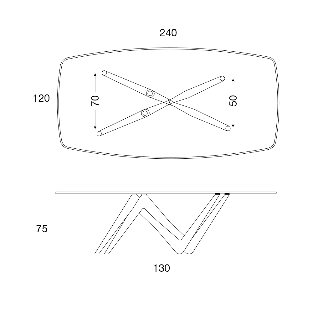 struktura przeplata się, lekko podpierając blat, nadając mu