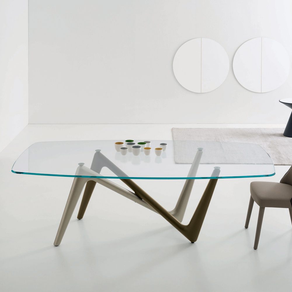 Stół do jadalni z przezroczystego szkła i podstawy poliuretanowej, 2 rozmiary wyprodukowany we Włoszech.
