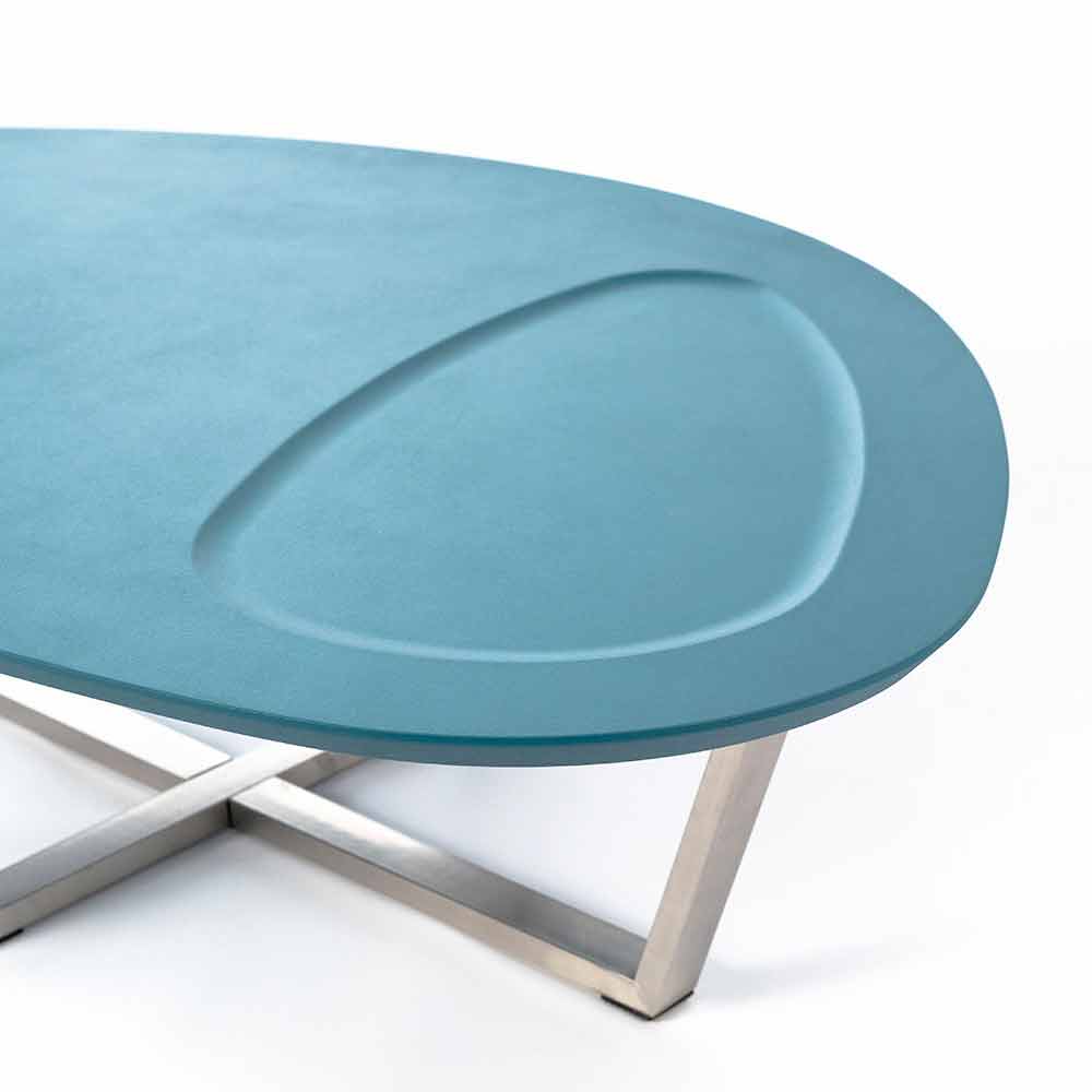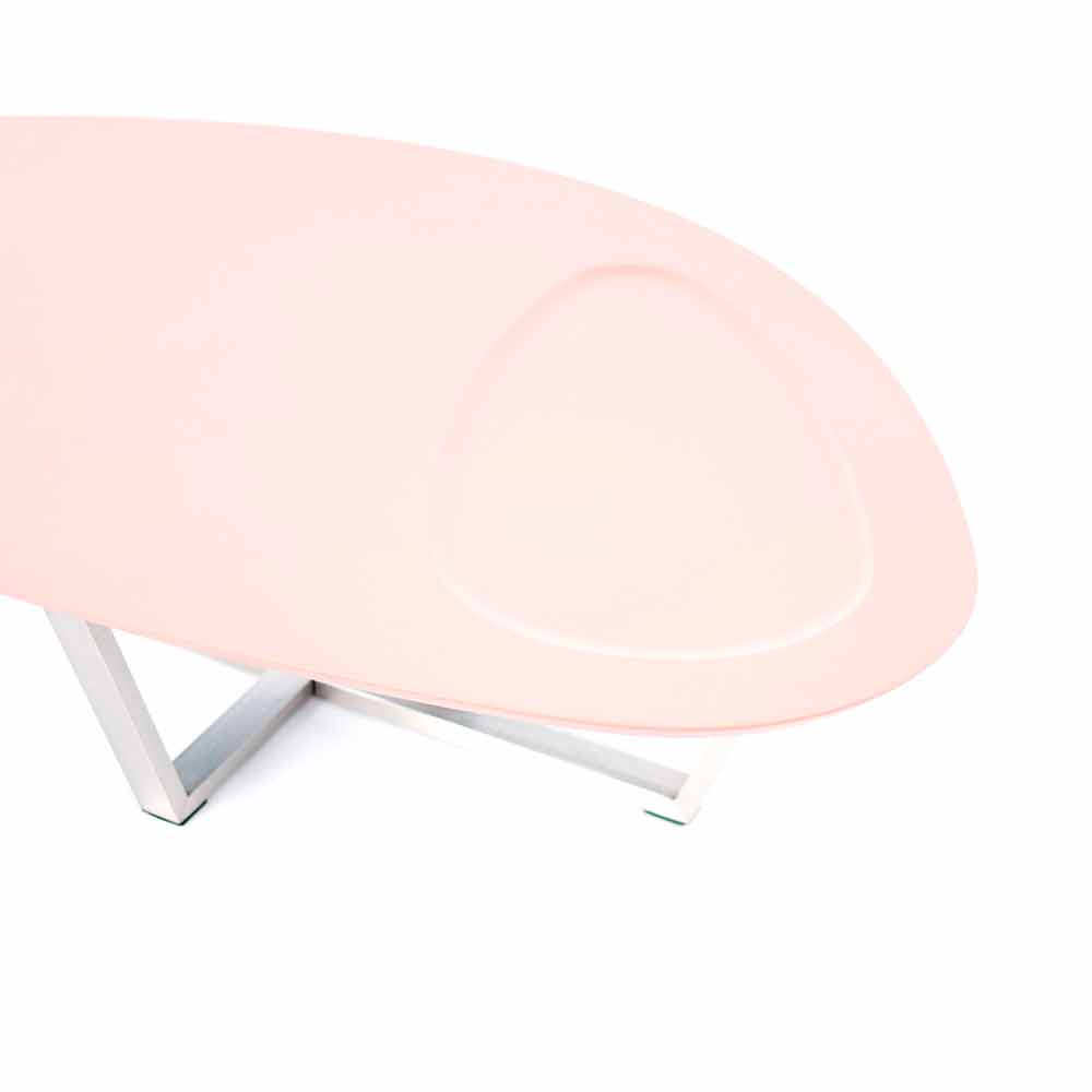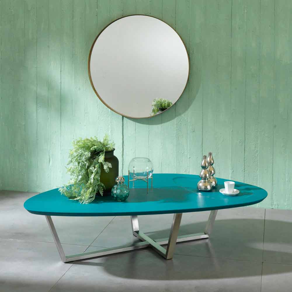 Donatella to ukształtowany stolik kawowy wykonany z blatu MDF i chromowanej metalowej podstawy.