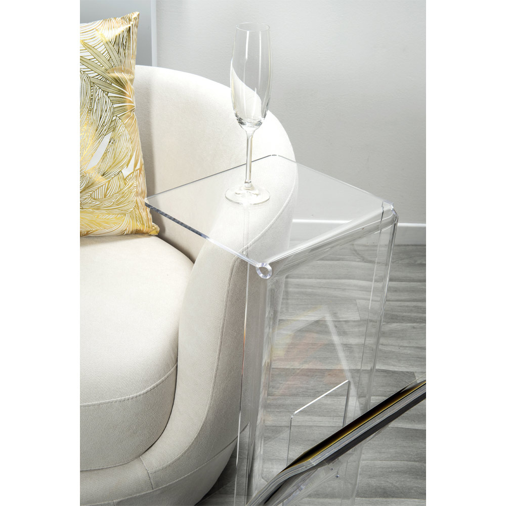Mały stolik QUERO VAS charakteryzuje się nowoczesnym i eleganckim wyglądem, który idealnie pasuje do Twojego salonu. Wykonany jest z PMMA z pierwotnych polimerów. Cechy fizyczne pleksi (izolujące termicznie, odporne na wstrząsy, nieodkształcalne, niezmienne) sprawiają, że stół nadaje się zarówno do pomieszczeń wewnętrznych, jak i zewnętrznych. Jego jasność pozostaje niezmieniona i niezmienna w czasie. Zastosowana pleksiglas PMMA z polimerów pierwotnych jest nietoksyczny, hipoalergiczny, bezwonny i antybakteryjny. W 100% nadaje się do recyklingu.