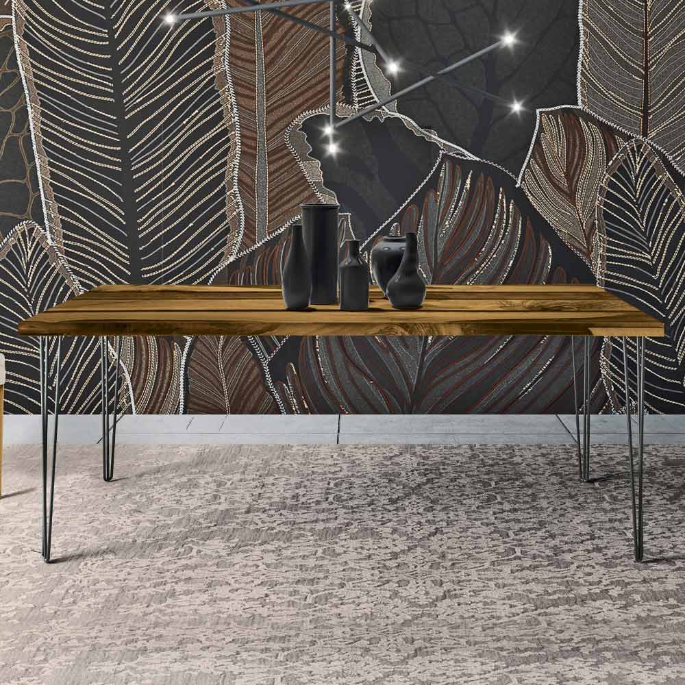 Naprawiono prostokątny stół z blatem z drewna i żywicy Wyprodukowano we Włoszech