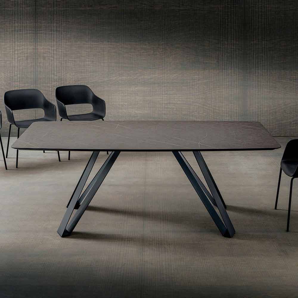 Stół do jadalni z warstwowego hpl i antracytowego metalu Made in Italy, wysoka jakość.