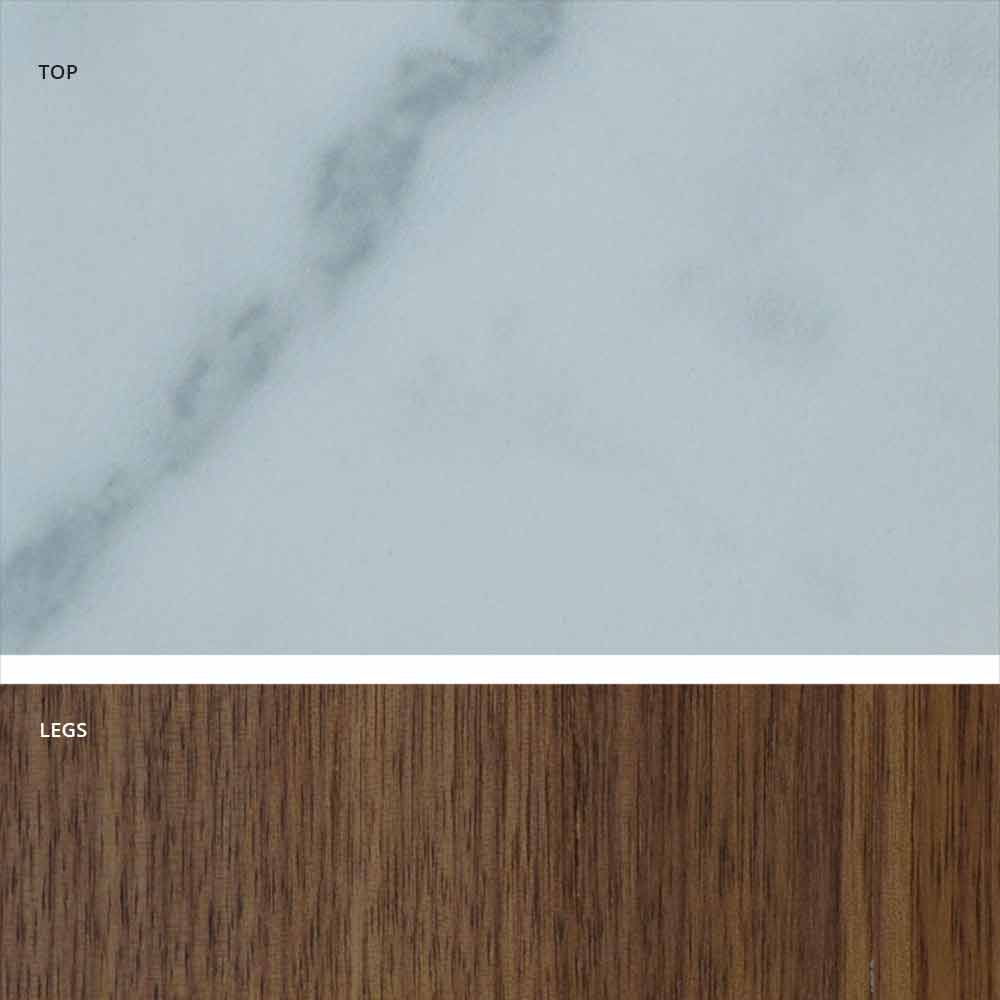 - baza składająca się z ponad 70 listew w ręcznie olejowanym drewnie jesionowym w kolorze orzechowym i wierzchu w postaci pół-beczki z kamionki w nieprzejrzystym białym marmurze statuarycznym.