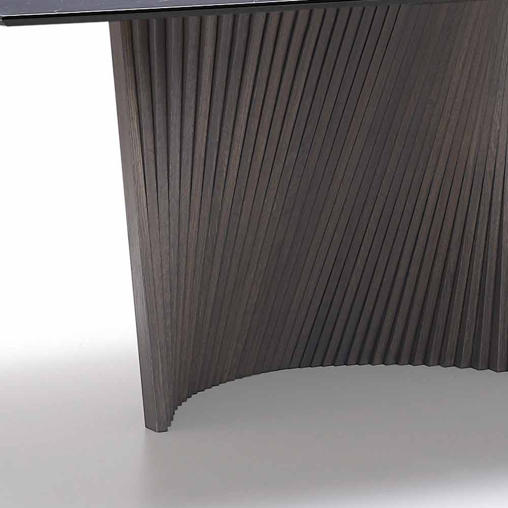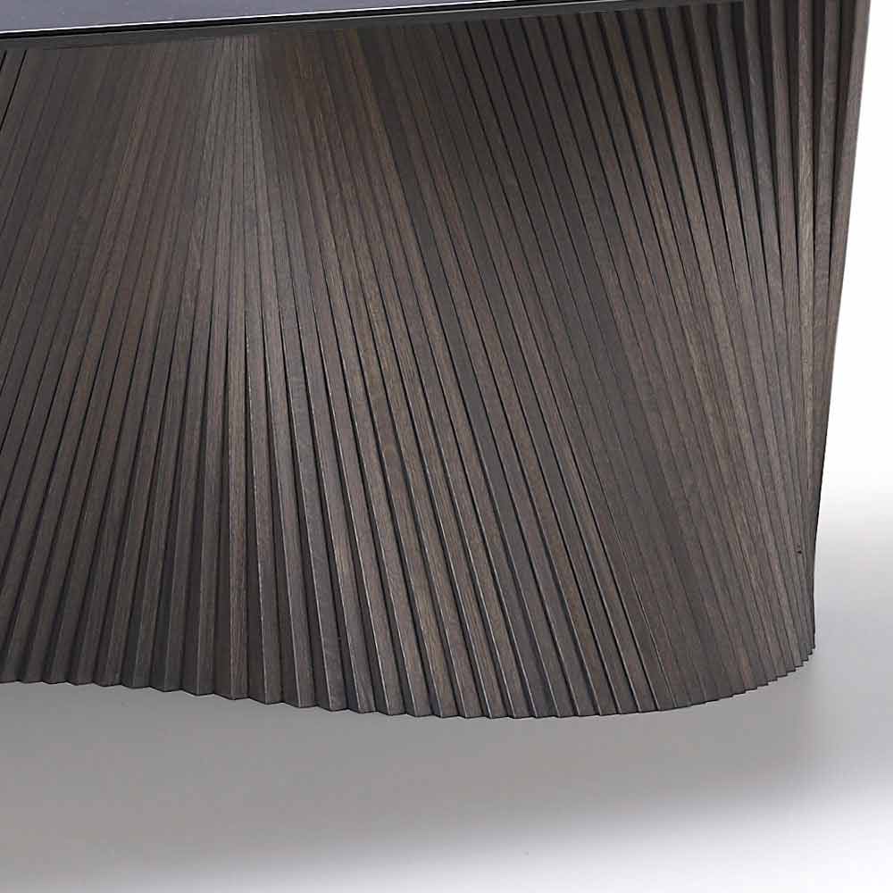 - podstawa składająca się z ponad 70 ręcznie naoliwionych listew z czarnego jesionu i półzłobionej podłogi w matowym brązowym kamieniu z efektem marmuru;