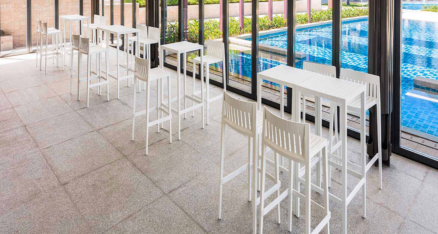 Stół ogrodowy o określonych liniach jest wykonany z polipropylenu i włókna szklanego. Materiały te są odporne na uderzenia i stabilizatory UV.