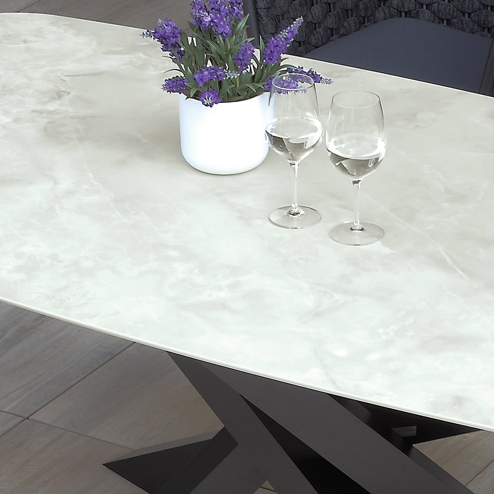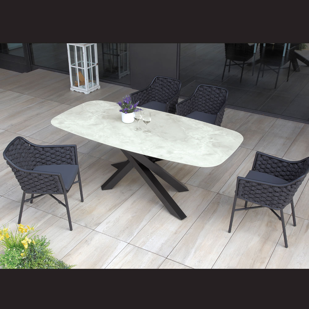 Ten stół ogrodowy łączy elegancki design i doskonałą odporność , idealny do wyposażenia każdego środowiska zewnętrznego ze stylem. Jego malowana aluminiowa konstrukcja, solidna i o nowoczesnym kroju, jest połączona z wyrafinowanym blatem z warstwowego HPL , znanego ze swojej ekstremalnej trwałości i odporności na czynniki atmosferyczne , zarysowania i ciepło.