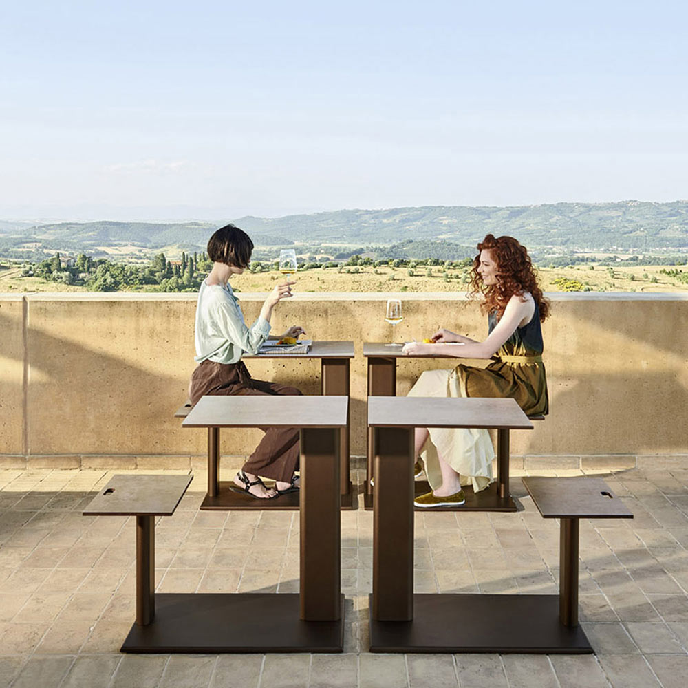zasadniczemu, wszechstronnemu i nowoczesnemu wzornictwu ten stół z siedziskiem jest idealny do uzupełnienia wyposażenia różnych przestrzeni mieszkalnych, zarówno wewnętrznych, jak i zewnętrznych, wzbogacając estetykę otoczenia o osobowość i
