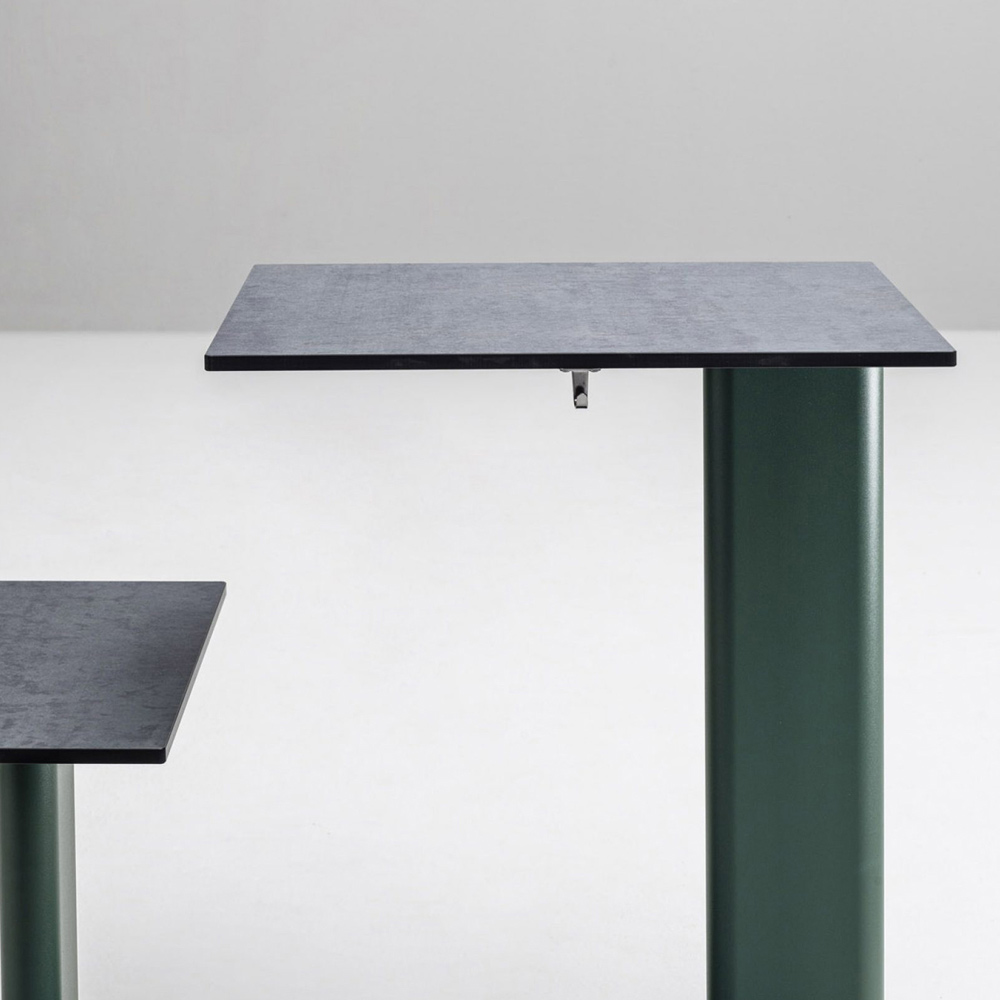 Stół z połączonym siedziskiem z aluminium i blatem z kolorowego HPL Made in Italy.