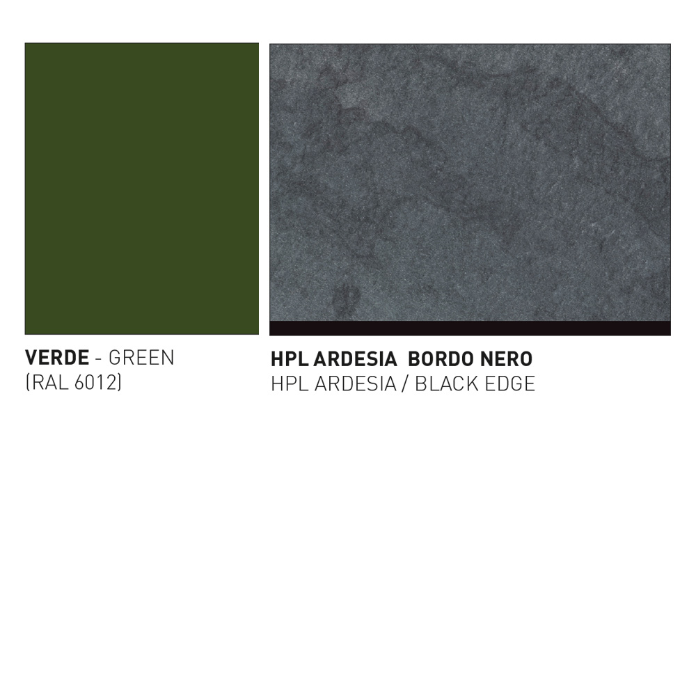 - zielona konstrukcja, siedzisko i blat łupkowy.