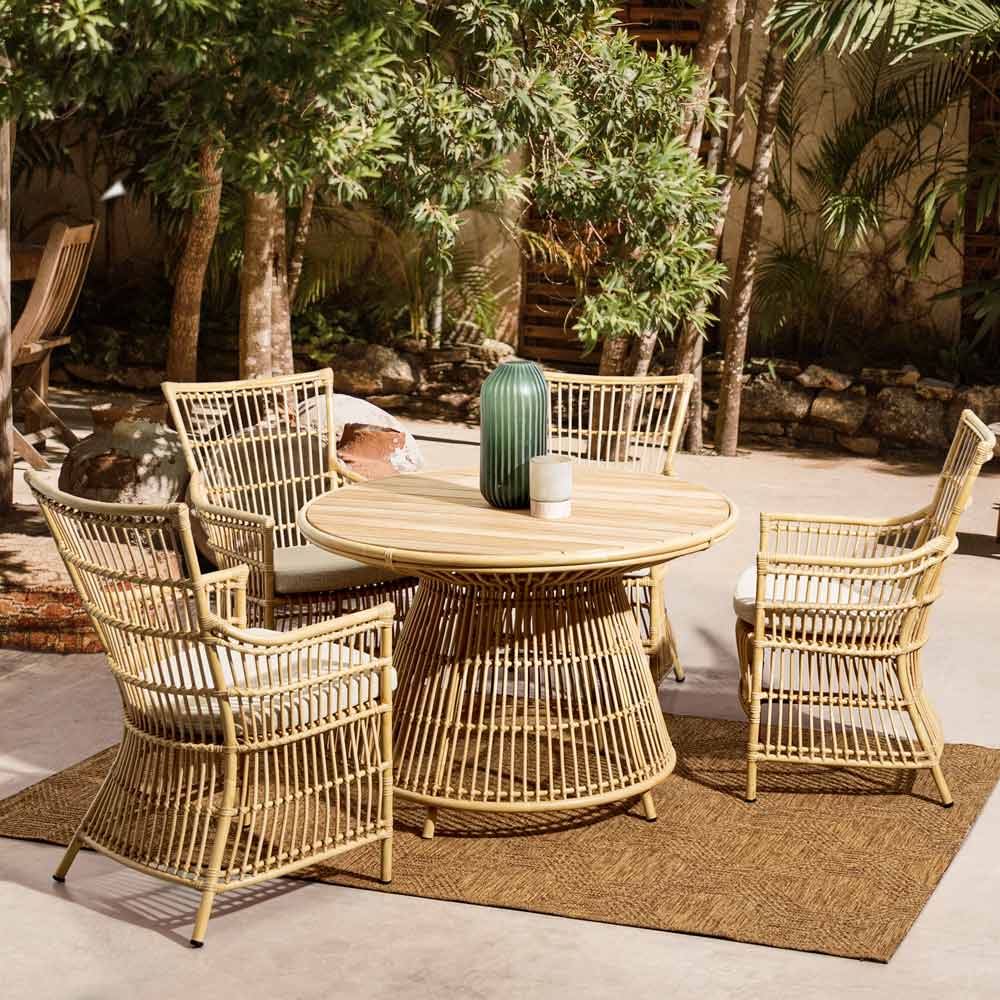 Ten stół ogrodowy to prawdziwe arcydzieło designu i funkcjonalności . Dzięki organicznemu kształtowi i czystym liniom jest to element wyposażenia, który wyróżnia się stylem i elegancją , idealny do organizowania lunchów i kolacji na świeżym powietrzu. Blat stołu wykonano z drewna, co zapewnia niezwykłą trwałość i łatwość konserwacji. Aluminiowa podstawa z efektem rattanu tworzy wizualny efekt lekkości i otwartości , dzięki czemu stół idealnie komponuje się z otaczającym otoczeniem, czy to zielenią ogrodu, czy tarasem nowoczesnego domu. To nie tylko stół, ale miejsce spotkań , w którym design i natura łączą się, tworząc niezapomniane chwile.