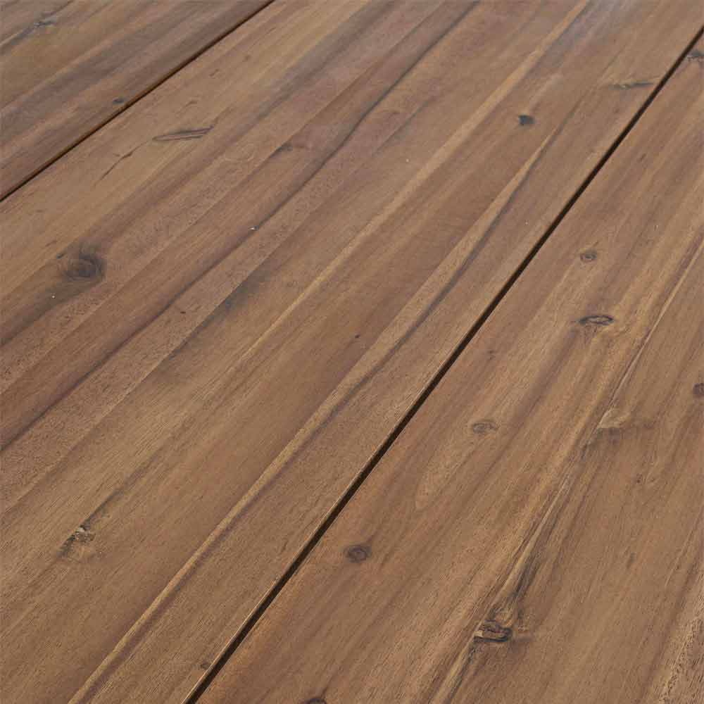 Top z drewna akacjowego FSC 100%. olejowane, nogi stalowe ocynkowane ogniowo i malowane proszkowo (poliester). Listwy boczne w oryginalnych sekcjach bagażnika. Śruby ze stali ocynkowanej. Nogi do złożenia.