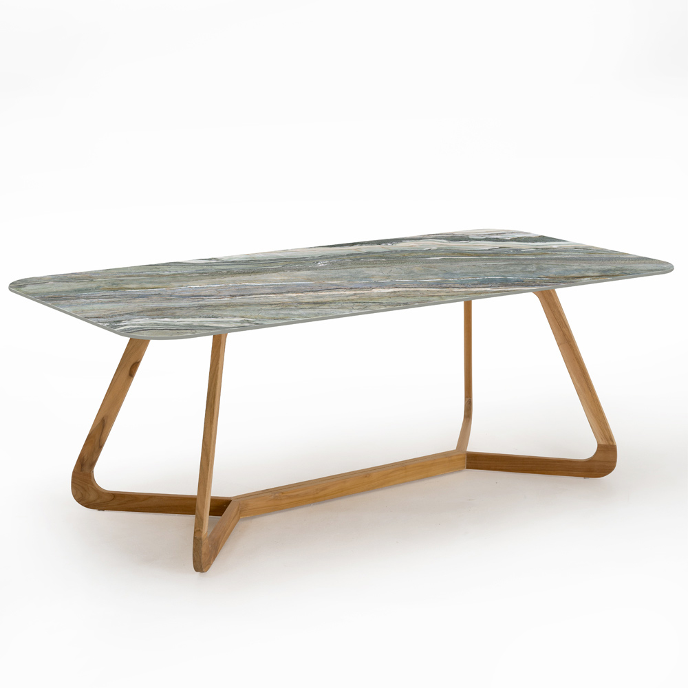 Prostokątny stół ogrodowy z drewna i ceramiki, wyprodukowany we Włoszech