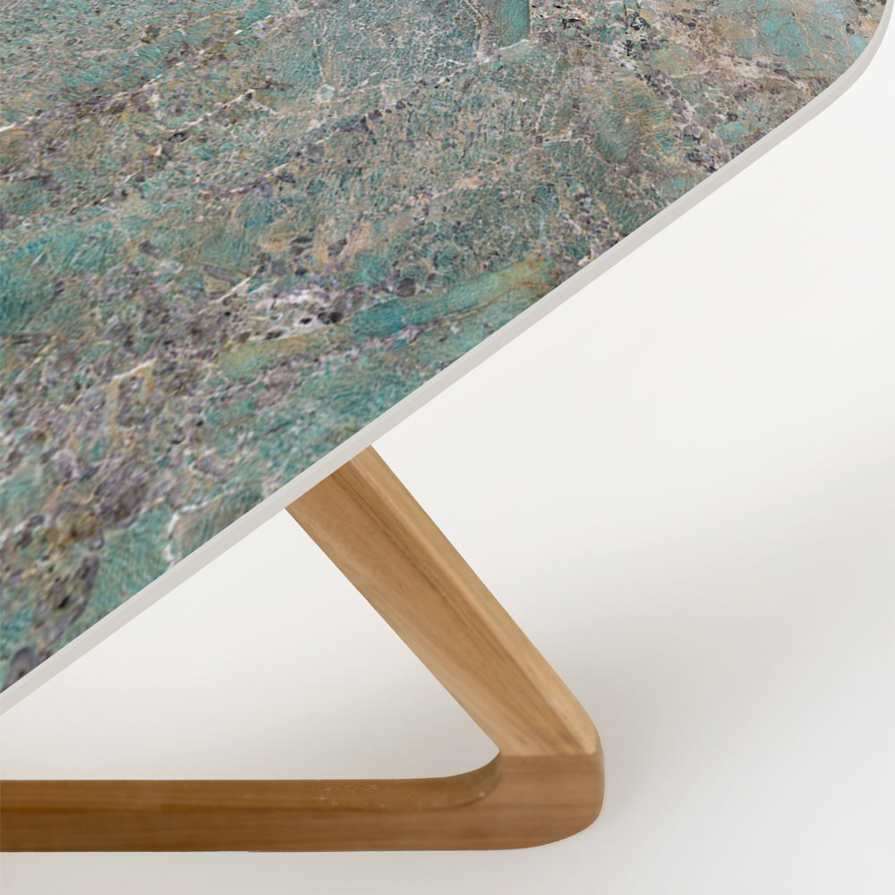 wyprodukowany we Włoszech. Ten ekskluzywny stolik ogrodowy to prawdziwa perełka designu, łącząca elegancję drewna z nowoczesnością ceramiki. Blat wykonany z wysokiej jakości ceramiki w zachwycającym, antycznym odcieniu zieleni oferuje wyjątkową odporność na warunki atmosferyczne i nieprzemijające piękno.