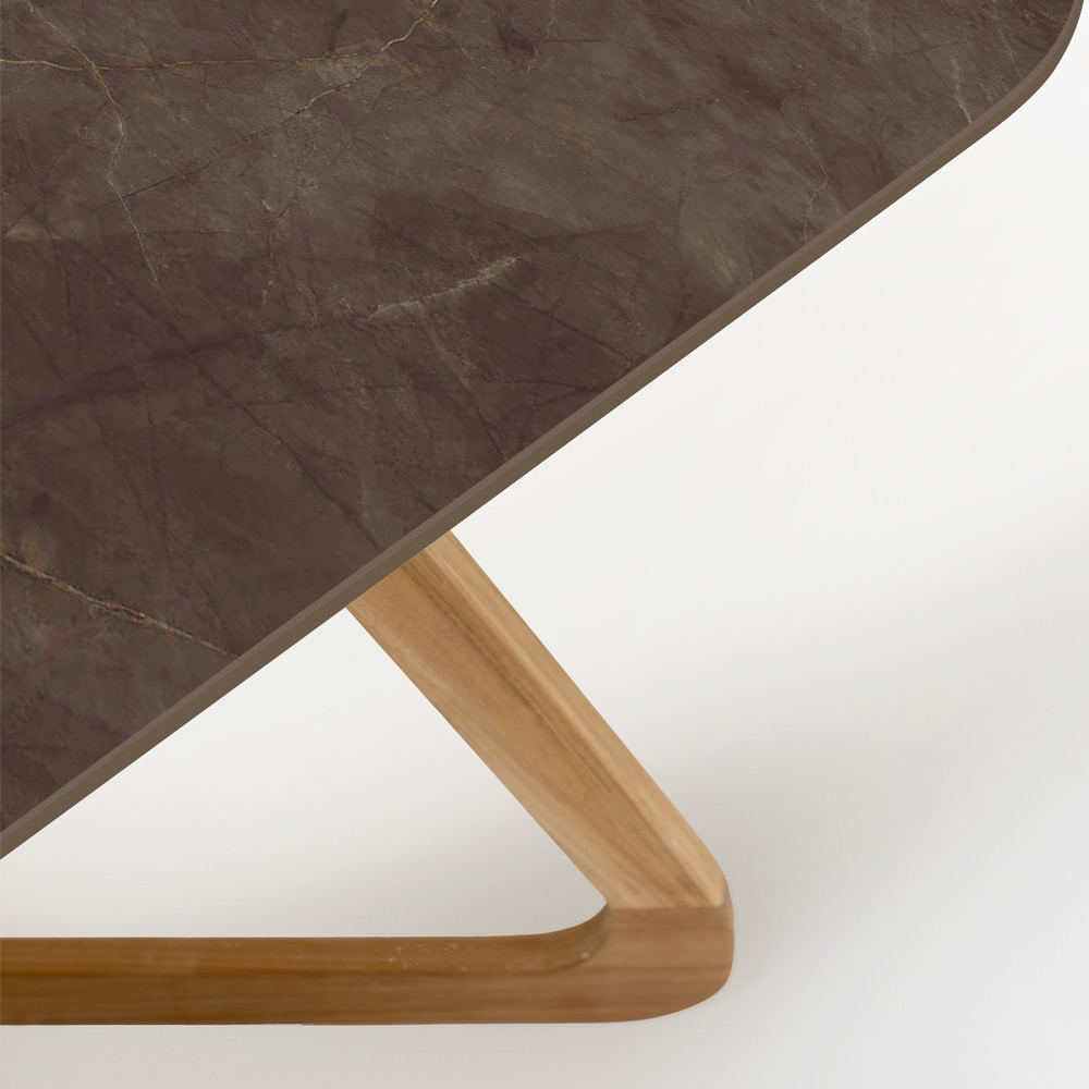 Drewniana podstawa nie tylko solidnie podtrzymuje solidny ceramiczny blat, ale także dodaje naturalny i elegancki element designu, który pasuje do każdego stylu wystroju zewnętrznego, od rustykalnego po nowoczesny.
