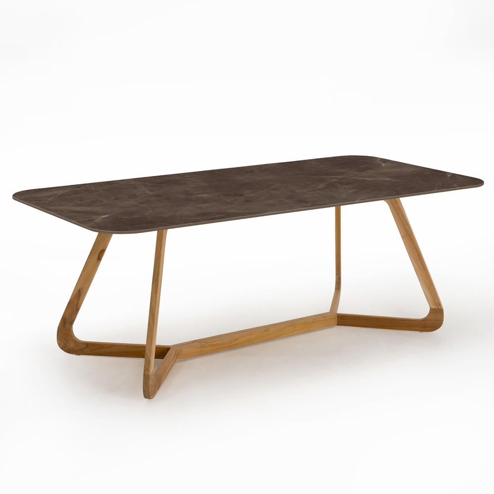 Prostokątny stół ogrodowy z drewna i ceramiki, wyprodukowany we Włoszech
