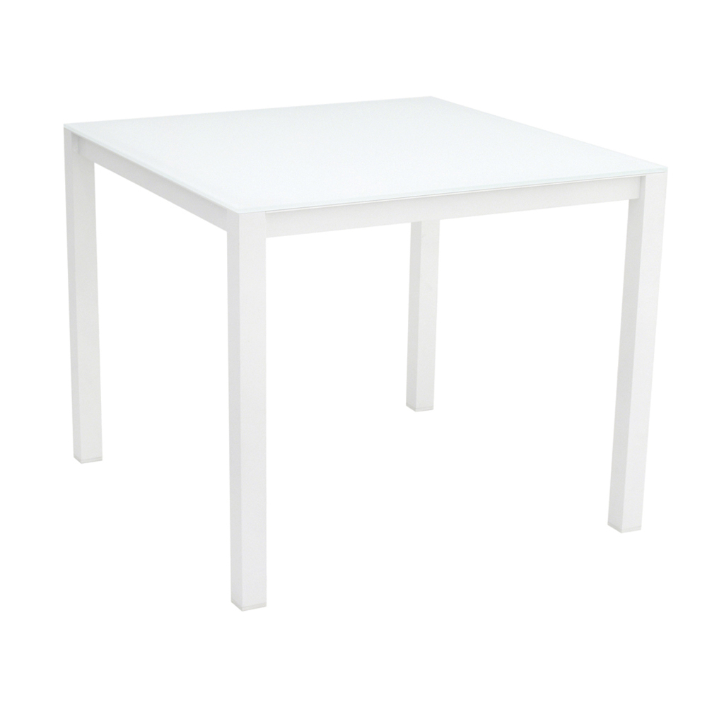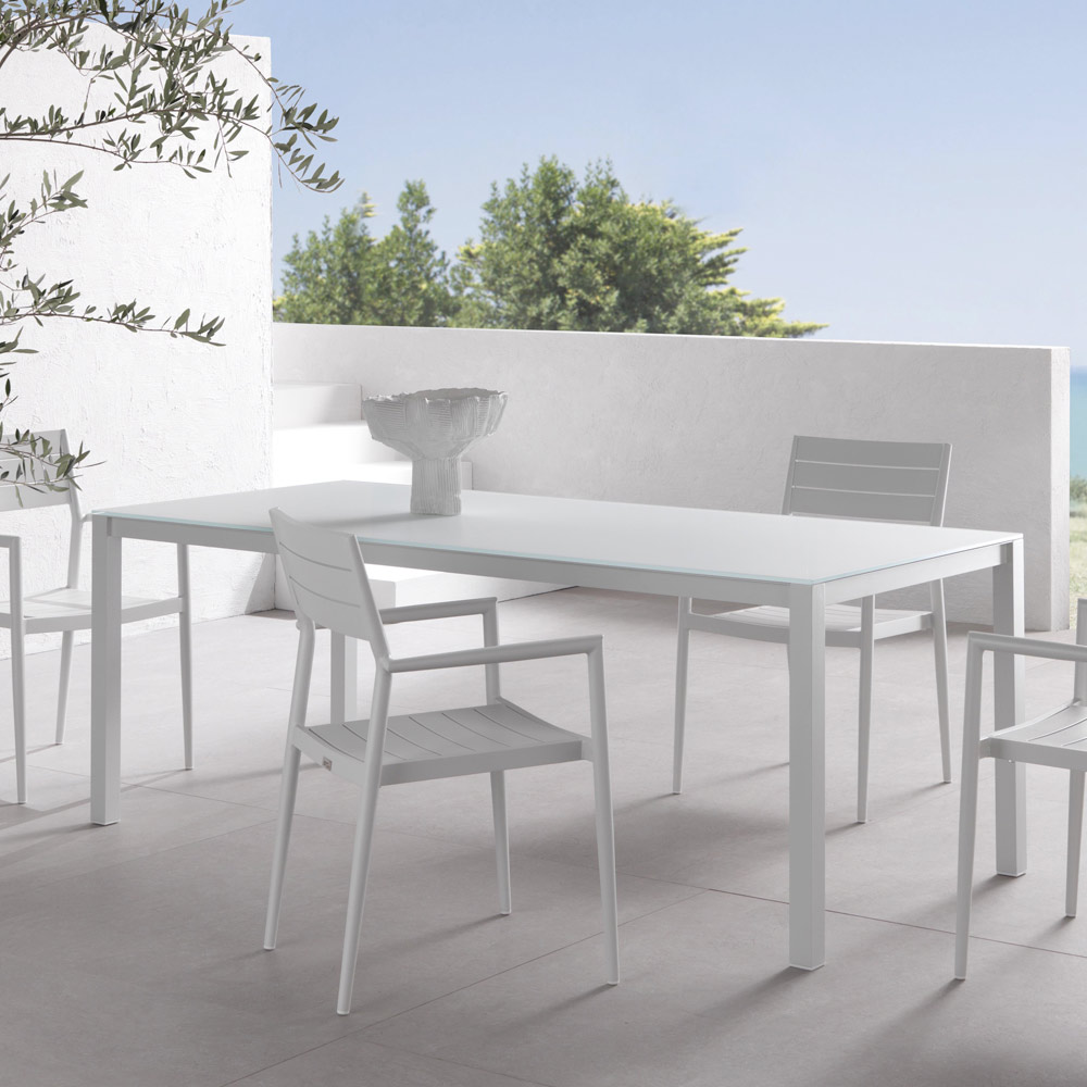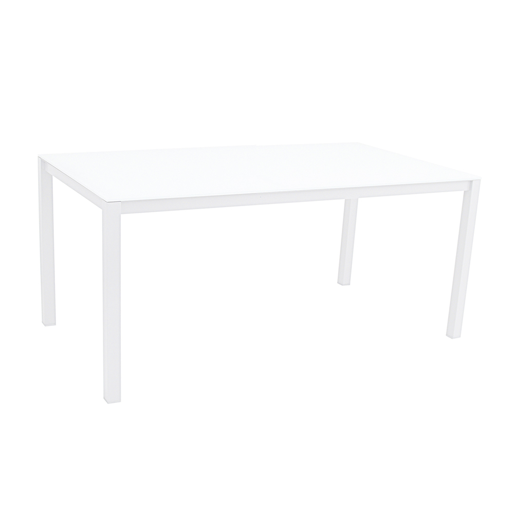 Stół do jadalni z aluminiową strukturą malowaną proszkowo epoksydem i szklanym blatem malowanym z tyłu