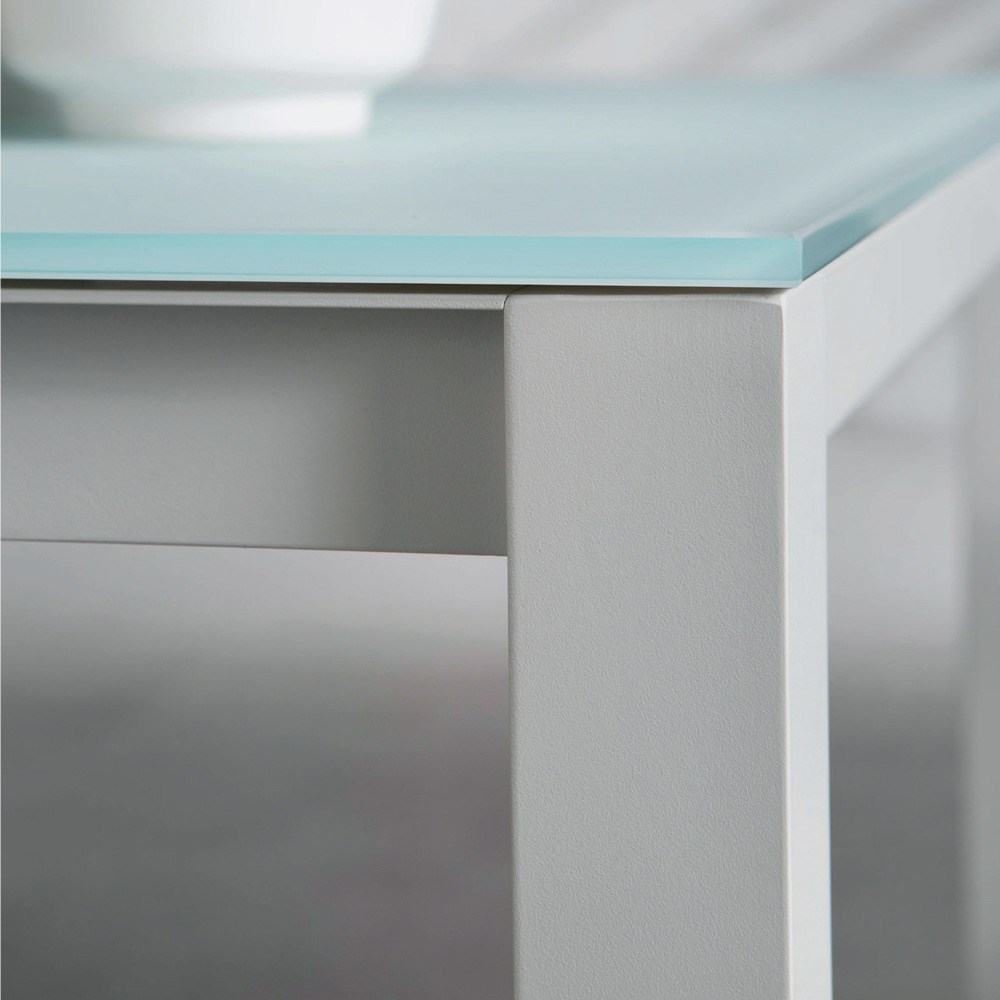 aluminium malowanego proszkowo farbą epoksydową i blatem ze szkła malowanego od tyłu.