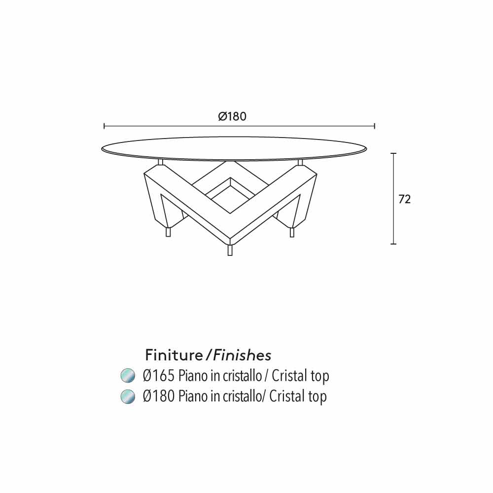 Okrągły drewniany stół jadalny z kryształowym blatem Bao, nowoczesny design, wyprodukowany we Włoszech