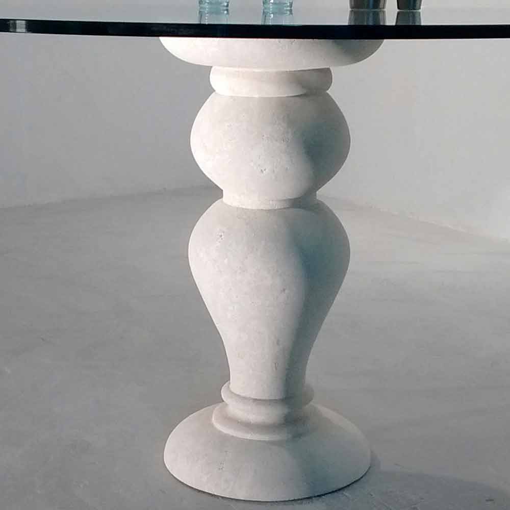 Stół okrągły z kamienia Vicenza i kryształu Edipo, wyrzeźbiony ręcznie