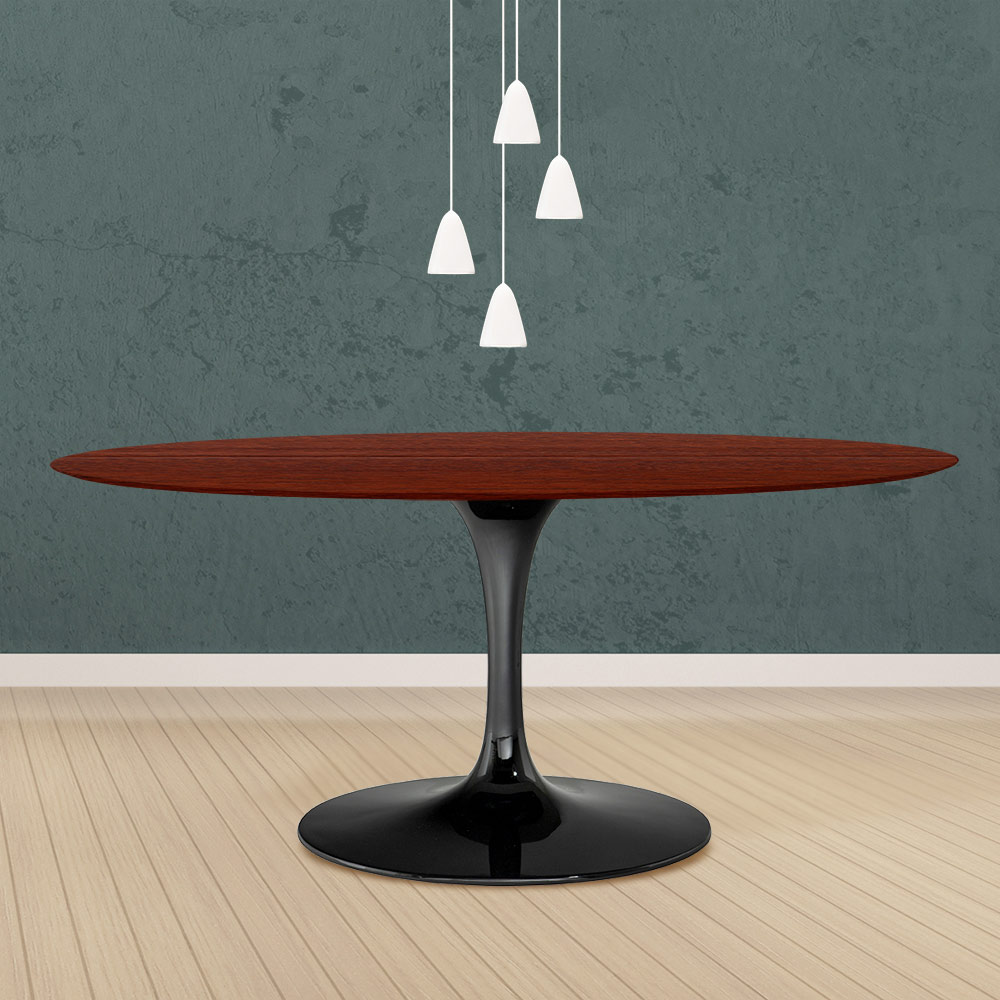 Owalny stół do jadalni z dębu bejcowanego na palisander i podstawą z polerowanego aluminium Made in Italy