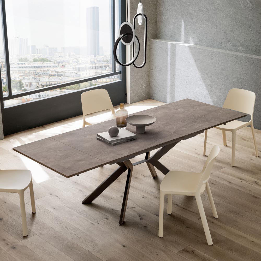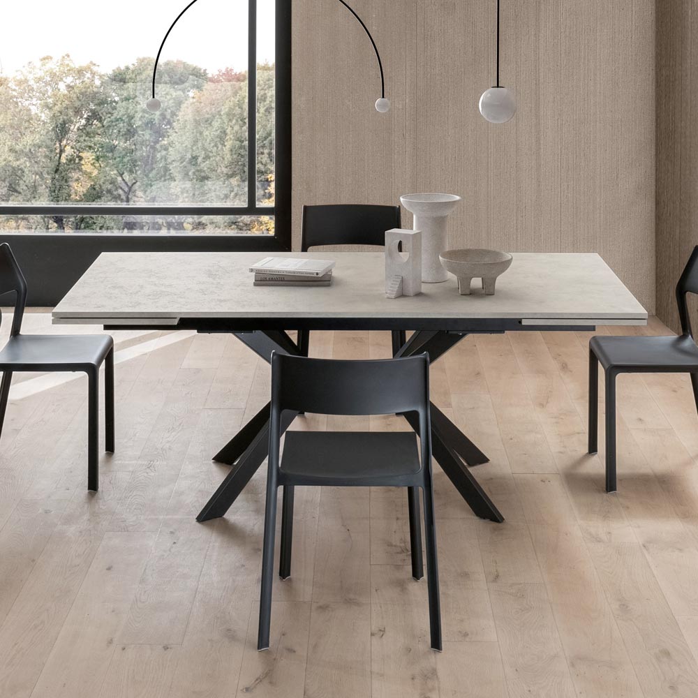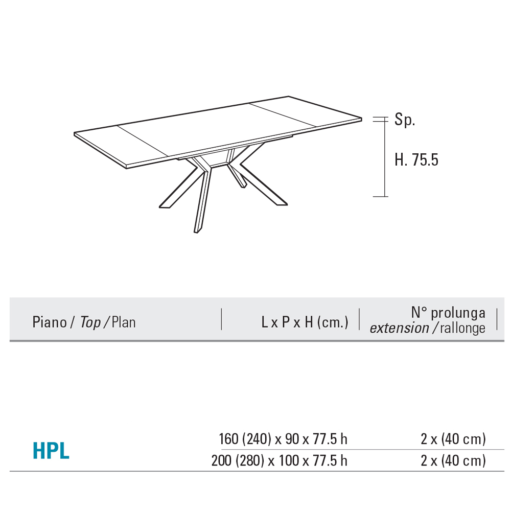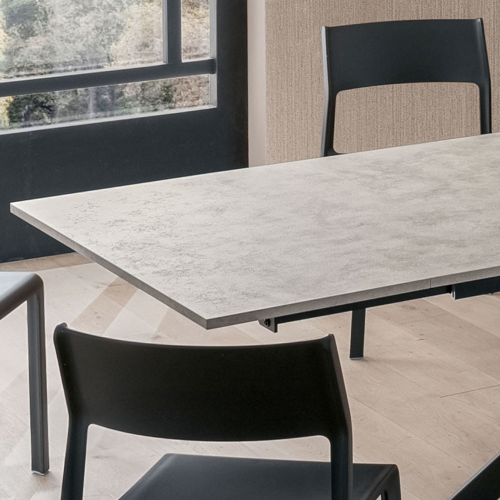 Elegancja i praktyczność łączą się w tym rozkładanym stole z płyty HPL i metalu . Został on zaprojektowany dla tych, którzy poszukują mebla o silnym efekcie wizualnym, ale jednocześnie niezwykle funkcjonalnego.