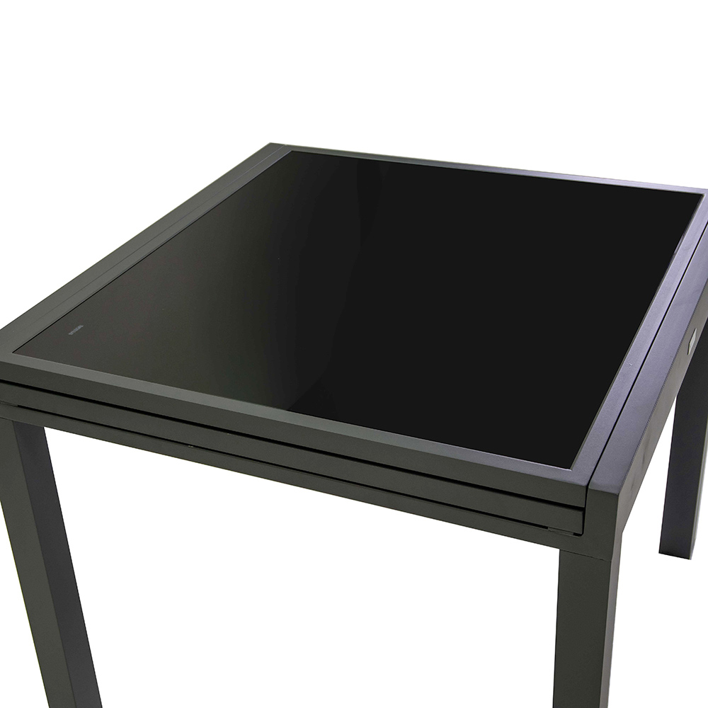 Szklany blat nie tylko dodaje elegancji, ale jest również łatwy do czyszczenia, idealny dla tych, którzy szukają praktycznego rozwiązania bez kompromisów w zakresie wzornictwa. Aluminiowa rama zapewnia trwałość i odporność na warunki atmosferyczne, dzięki czemu stół ten jest trwałym wyborem do spędzania miłych chwil na świeżym powietrzu lub eleganckich kolacji w pomieszczeniach.
