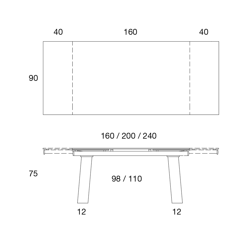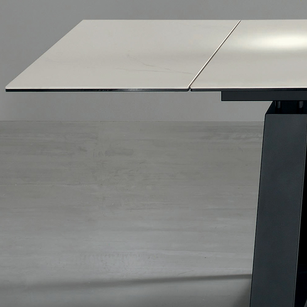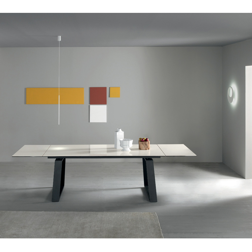 Rozkładany stół jadalny z błyszczącej ceramicznej i metalowej podstawie, różne rozmiary i wykończenia wykonane we Włoszech.