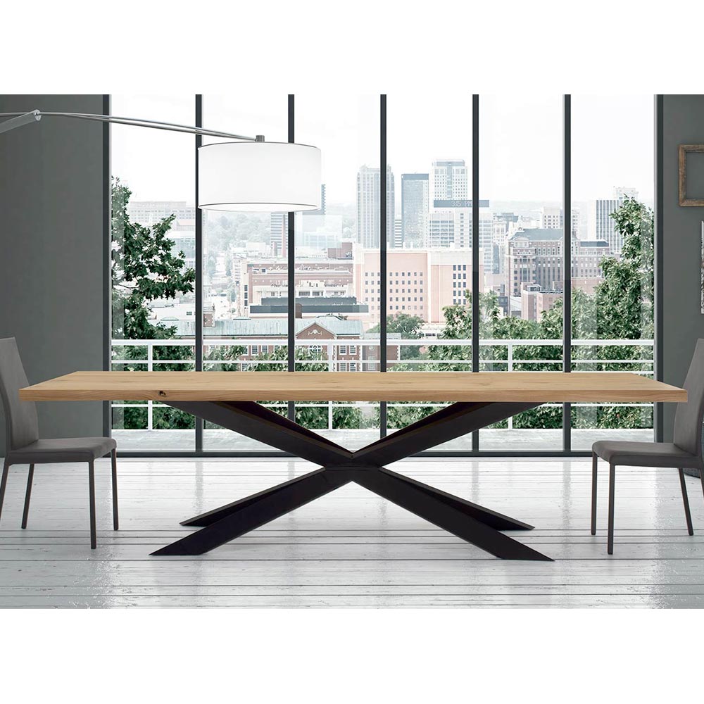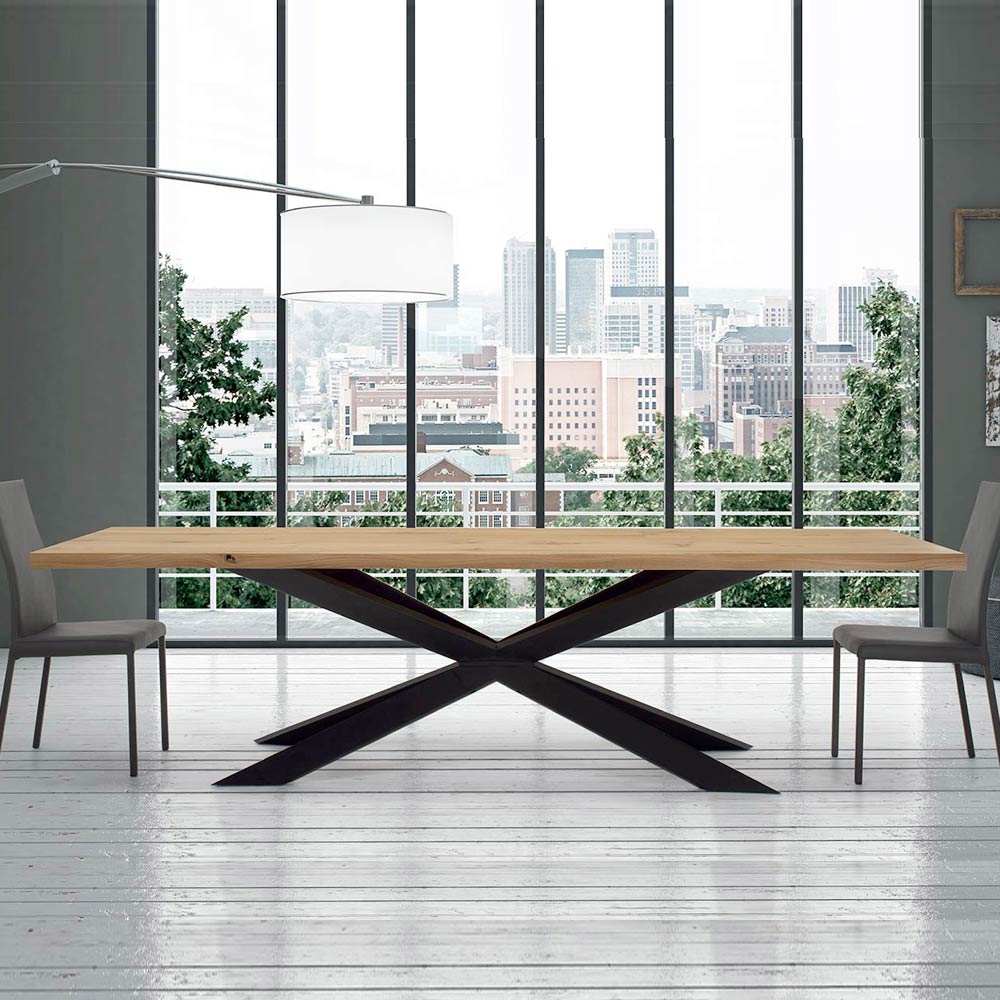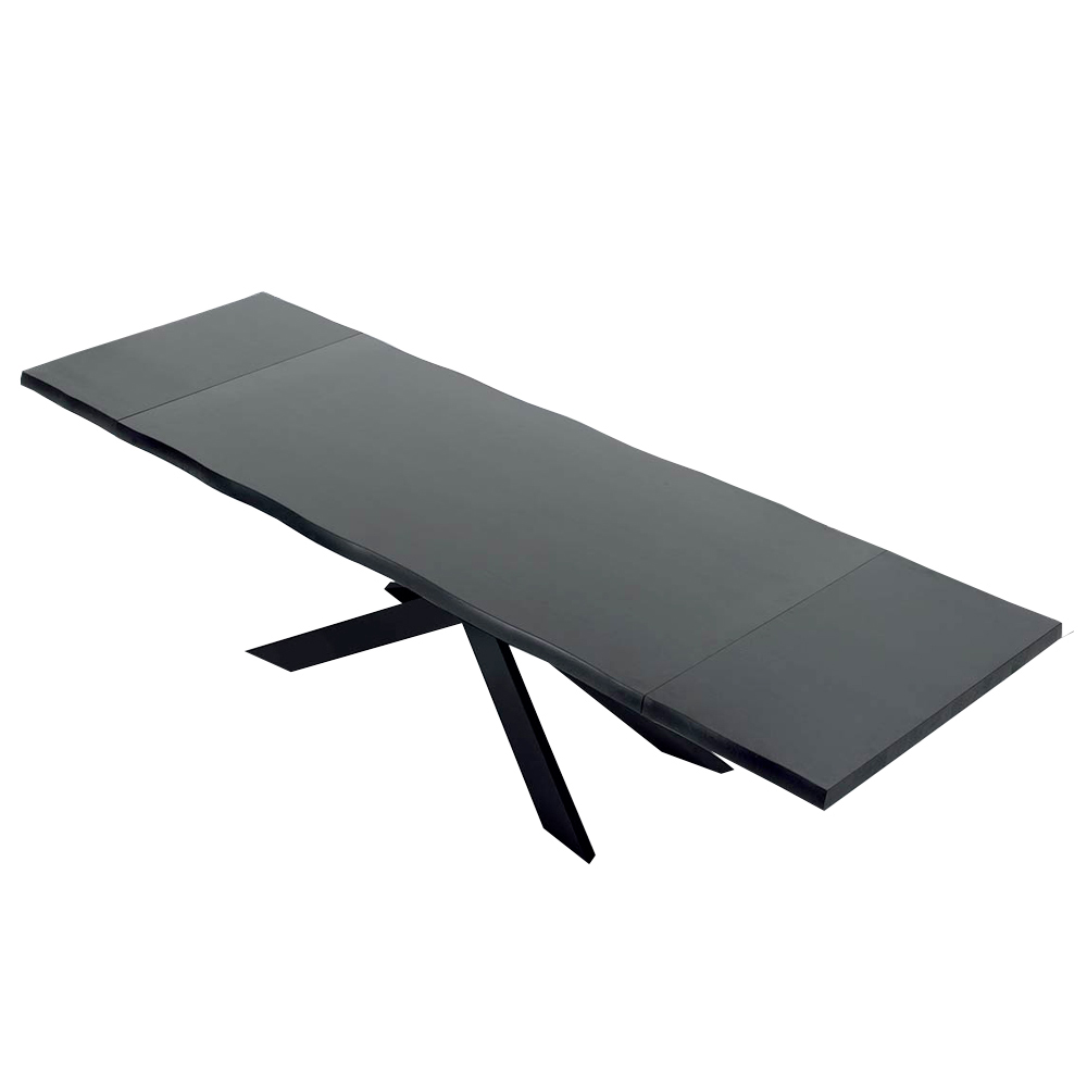 Rozkładany stół jadalny do 300 cm z fornirowanego drewna i czarnej stalowej podstawy, wyprodukowany we Włoszech.