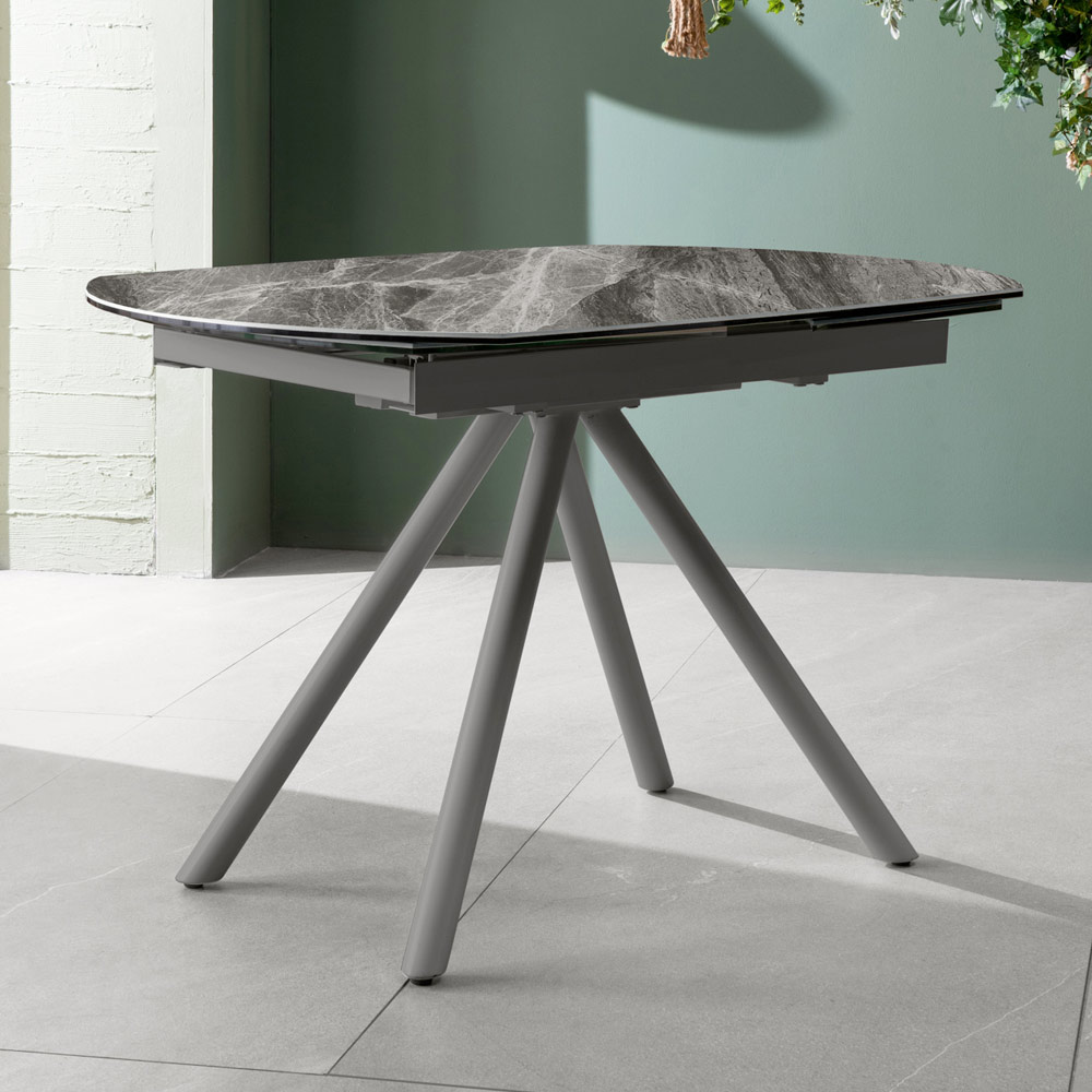 - Blat ceramiczny z efektem szarego marmuru, podstawa w kolorze antracytowym