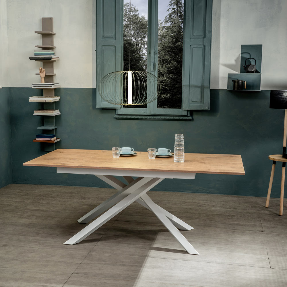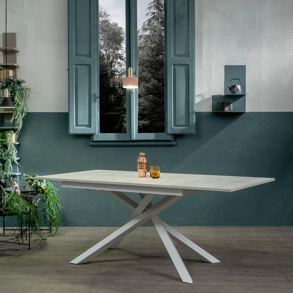 Konstrukcja rozkładanego stołu wykracza poza aspekt funkcjonalny i jest w stanie nadać przestrzeniom niepowtarzalny charakter, dzięki podstawie o wyszukanym, przyciągającym wzrok kształcie. Umieszczony w części dziennej, utrzymany w stylu współczesnym, preferującym minimalistyczne linie, może pomieścić do 8 osób i tworzy miejsce spotkań, w którym można spędzić czas z rodziną lub przyjaciółmi. Ten stół jadalny staje się niekwestionowanym bohaterem salonu, który odzwierciedla styl i osobowość domu.